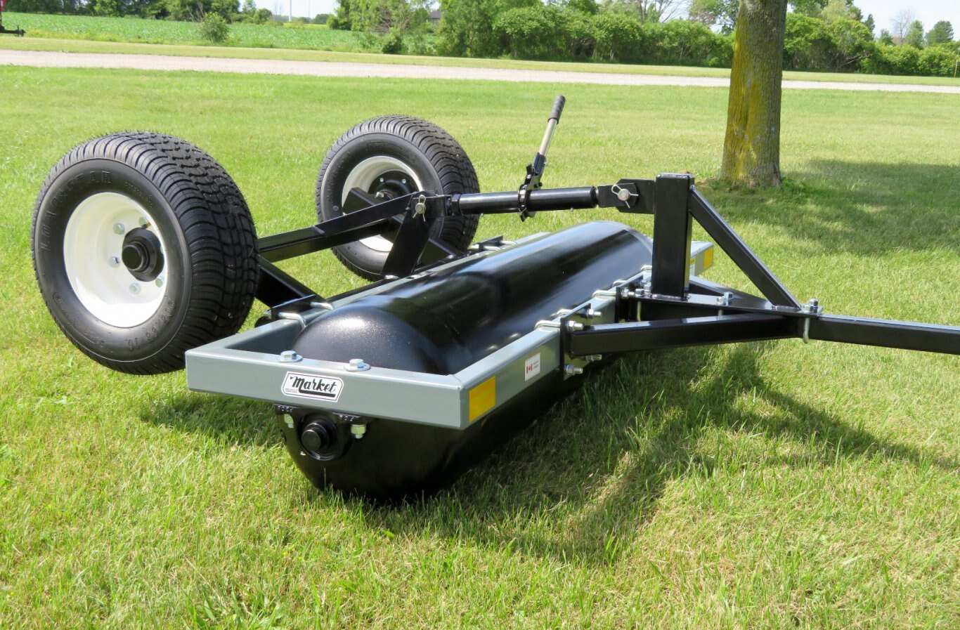 The powder coated dark grey roller frame is accented with a black heavy duty 16" steel roller, tongue & wheel kit. The rollers are equipped with 2 filler ports for adding and draining water.