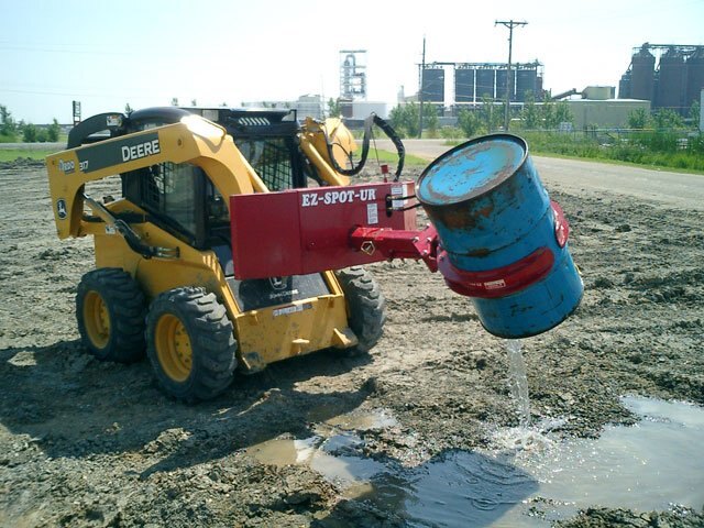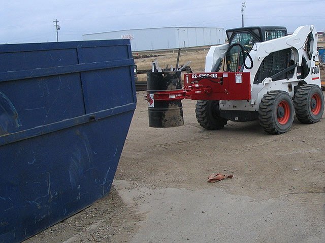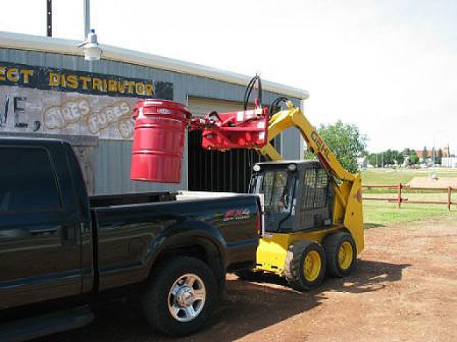 The BARREL HANDLER allows you to scoop up liquids and solids quickly and easily. The BARREL HANDLER rotates up to 300 degrees. With the optional insert, The BARREL HANDLER will adapt to handle 30 gallon drums. The Barrel handler is ideal for the oil, scrap iron and hazardous waste industries. You can scoop up waste in solid or liquid form safely from the operator’s seat of your skid steer loader. The Barrel handler will not damage plastic or metal barrels, and allows you to pour liquids or solids with precision. Plastic barrels won’t slip because of the unique barrel lift support.