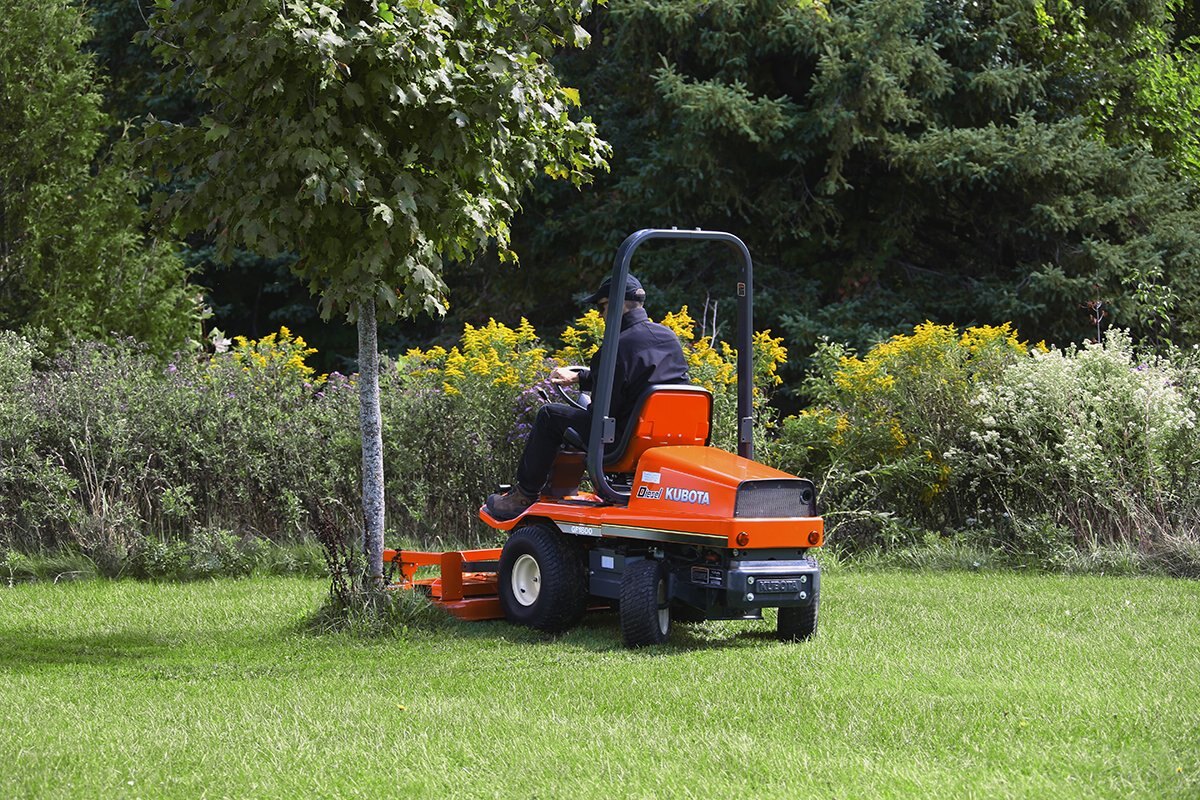 POWERFUL COMPACT LIGHTWEIGHT KUBOTA DIESEL ENGINEThe 18-horsepower diesel engine in each of these front tractors provides high torque rise to handle tough mowing jobs, even in thick grass. Fuel economy is superb with Kubota’s Three Vortex Combustion System (TVCS). You get cleaner exhaust and quiet operation. Rubber engine mounts minimize vibration, and cooling air is discharged to the rear, away from the operator. |