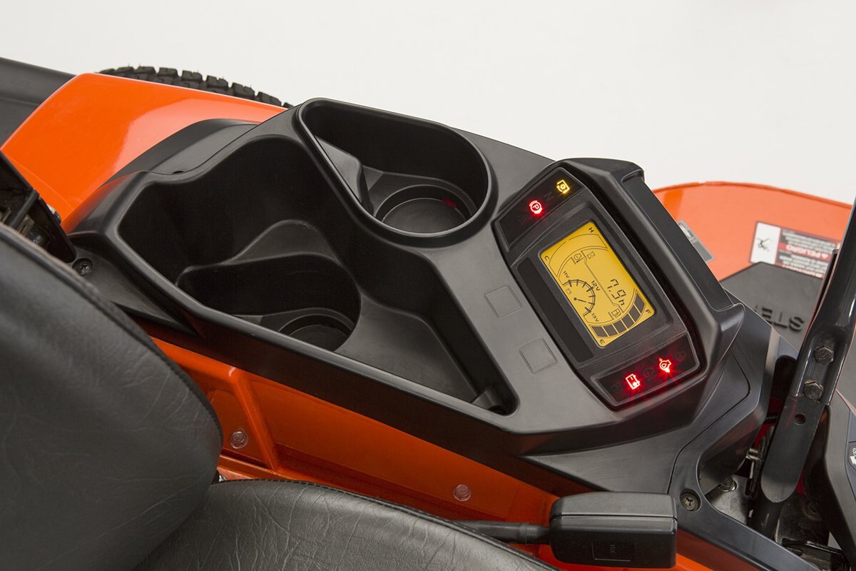 OUTSTANDING STABILITYWhen combined with the ZD Series' long wheelbase wide, large-diameter rear tires, and fuel tanks mounted above the tires and below the seat, the result is outstanding stability on a variety of terrains.