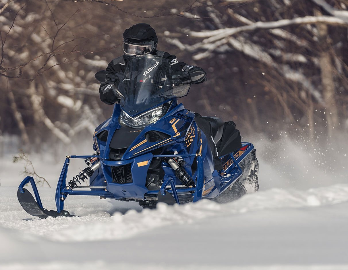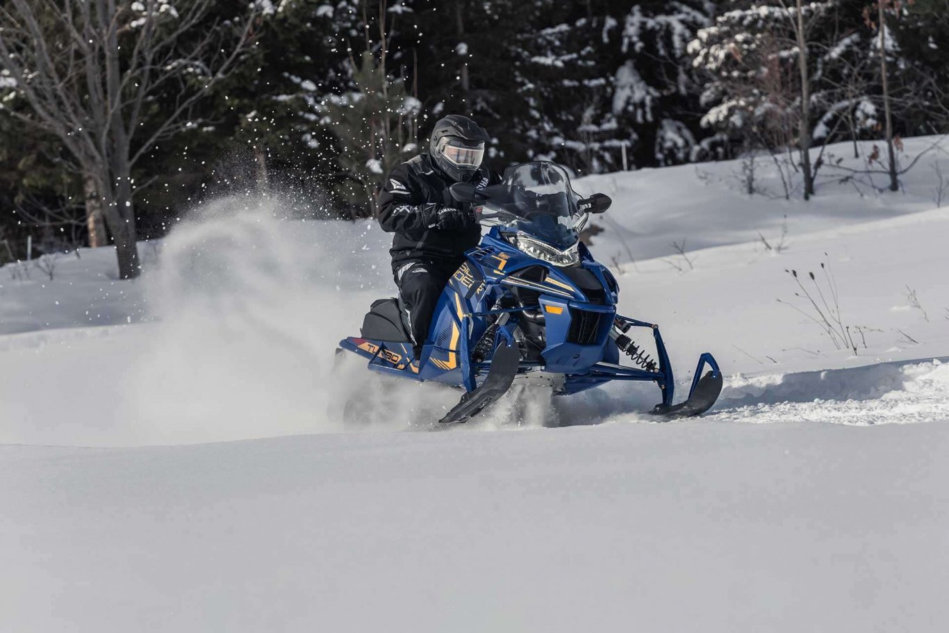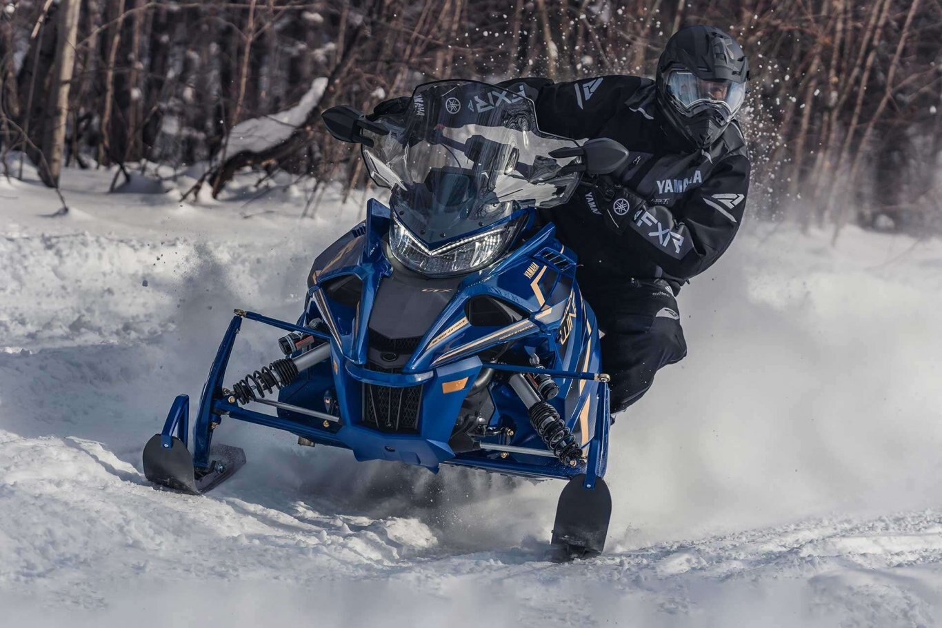 | The Sidewinder L-TX GT EPS has earned a reputation among seasoned, high mileage riders for its rock solid performance and practical comfort. The addition of Yamaha's electric power steering rewrites the definition of a top, trail performance snowmobile. EPS takes the fight out of muscling the powerful turbo through twisty trails - but it doesn't stop there. EPS also isolates the rider from unwanted handlebar resistance fed back through the mechanical steering system from inconsistencies in the trail. The resulting light steering effort and handling precision is unrivaled when it comes to long days in the saddle. Suspension comfort, responsive throttle and reliable power top the list of priorities for long distance rides. Features like a heated seat, full windshield and ample storage bring it home. Quick adjust Fox® Zero QS3 shocks suspend the rigid SRV chassis with its optimized geometry and ARCS front end. |