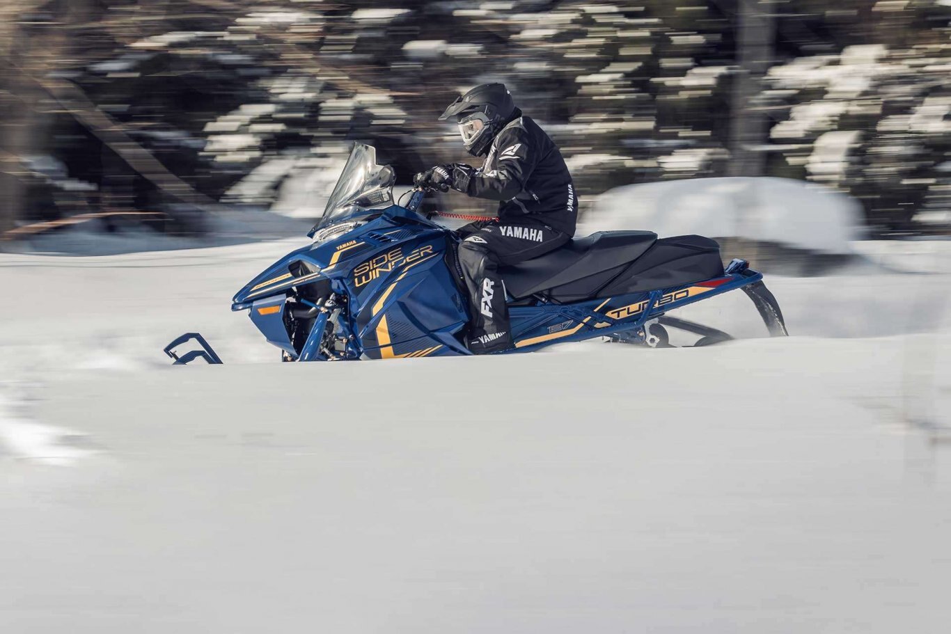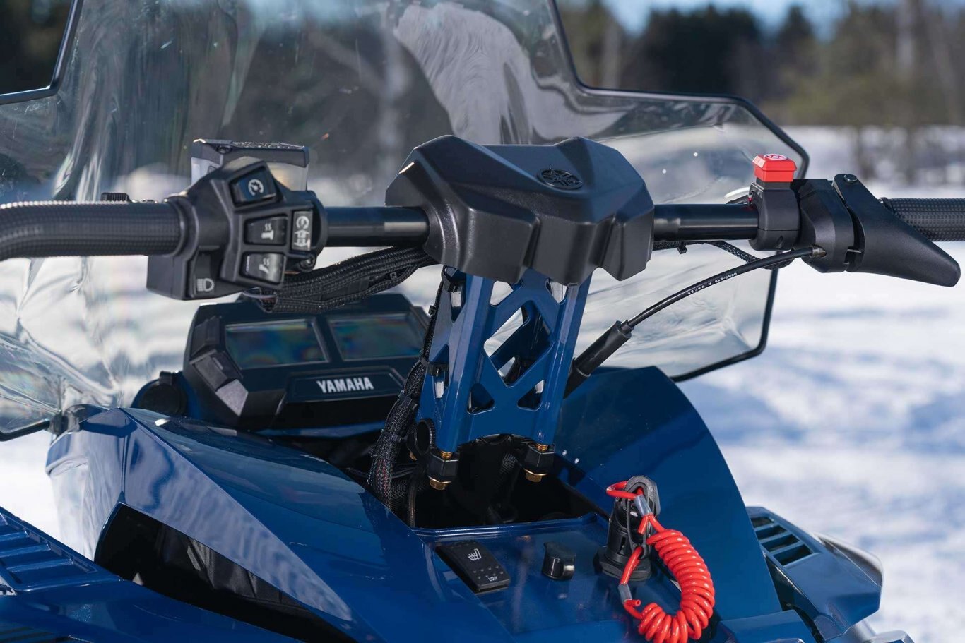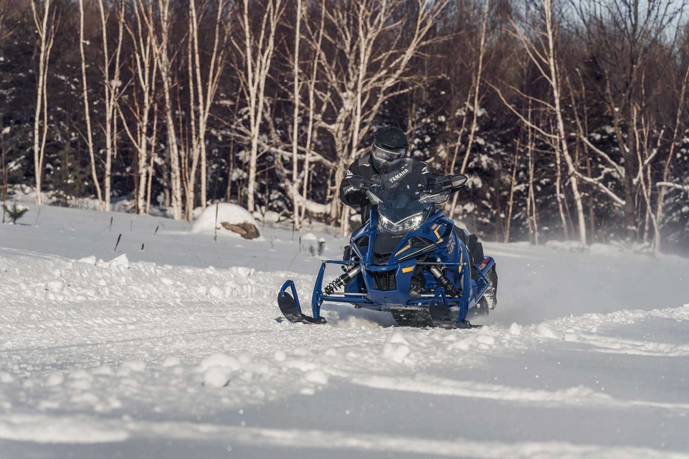 | The Sidewinder L-TX GT EPS has earned a reputation among seasoned, high mileage riders for its rock solid performance and practical comfort. The addition of Yamaha's electric power steering rewrites the definition of a top, trail performance snowmobile. EPS takes the fight out of muscling the powerful turbo through twisty trails - but it doesn't stop there. EPS also isolates the rider from unwanted handlebar resistance fed back through the mechanical steering system from inconsistencies in the trail. The resulting light steering effort and handling precision is unrivaled when it comes to long days in the saddle. Suspension comfort, responsive throttle and reliable power top the list of priorities for long distance rides. Features like a heated seat, full windshield and ample storage bring it home. Quick adjust Fox® Zero QS3 shocks suspend the rigid SRV chassis with its optimized geometry and ARCS front end. |
