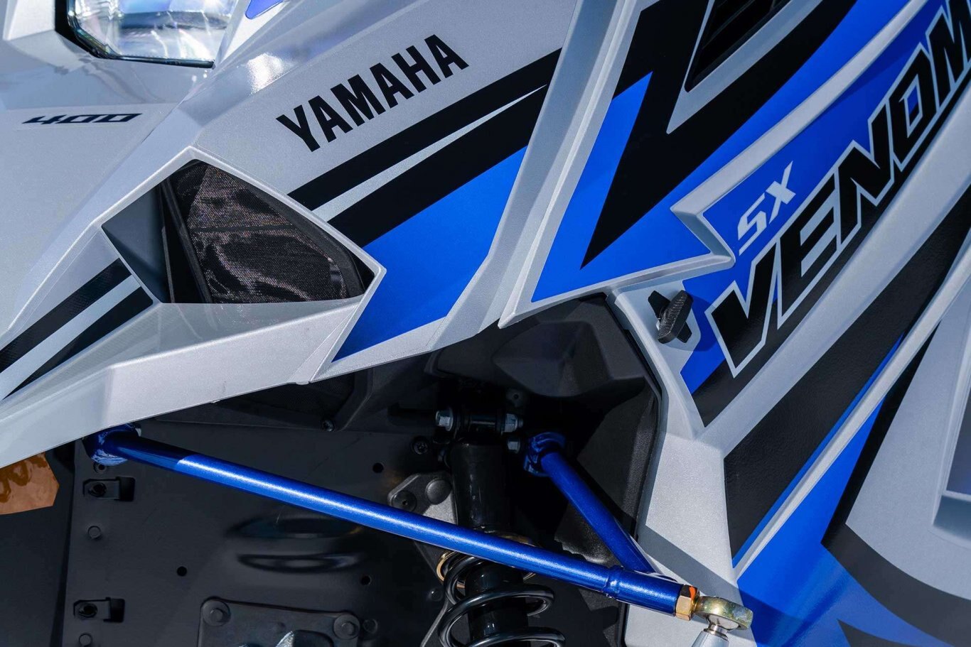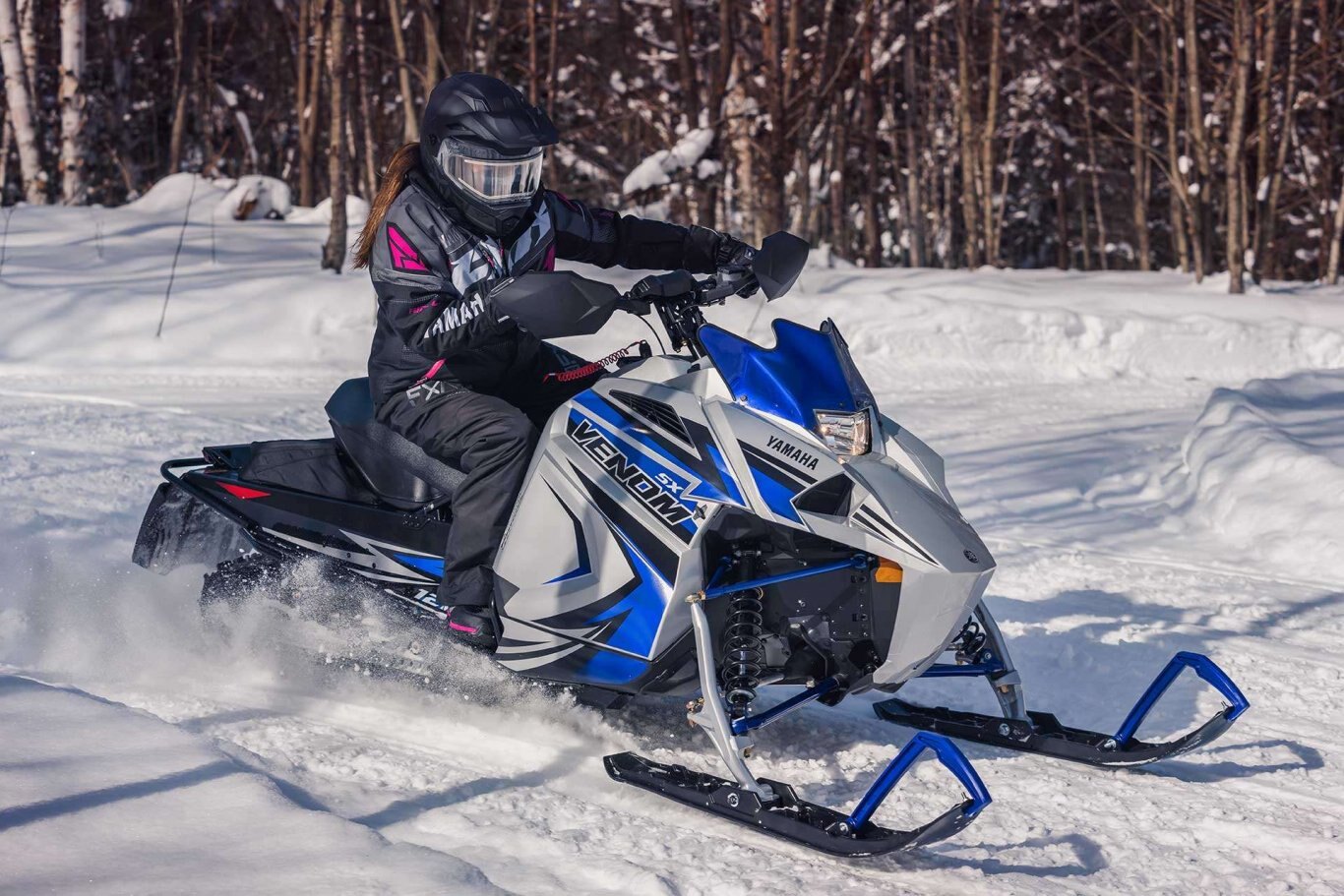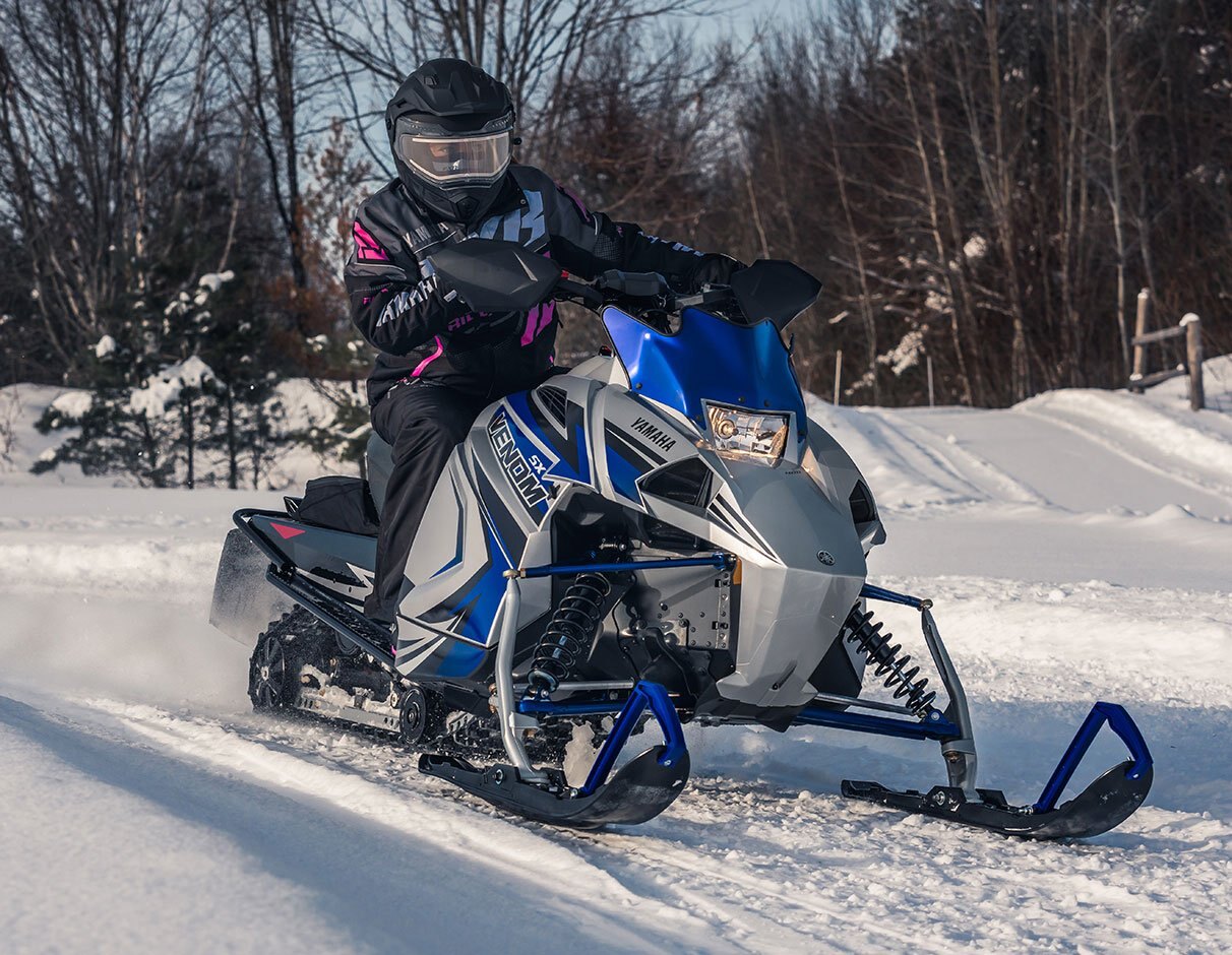 The Venom is a lightweight snowmobile aimed at young, new and returning riders. The fuel-injected, electric start, two-stroke 397cc single cylinder engine is propelled by a 121” Camso Hacksaw track. Long travel 'Dual Shock' rear suspension, lightweight alloy chassis, Stryke single keel ski and racy styling combine to create a compact sled that bristles with excitement at a very attractive price.