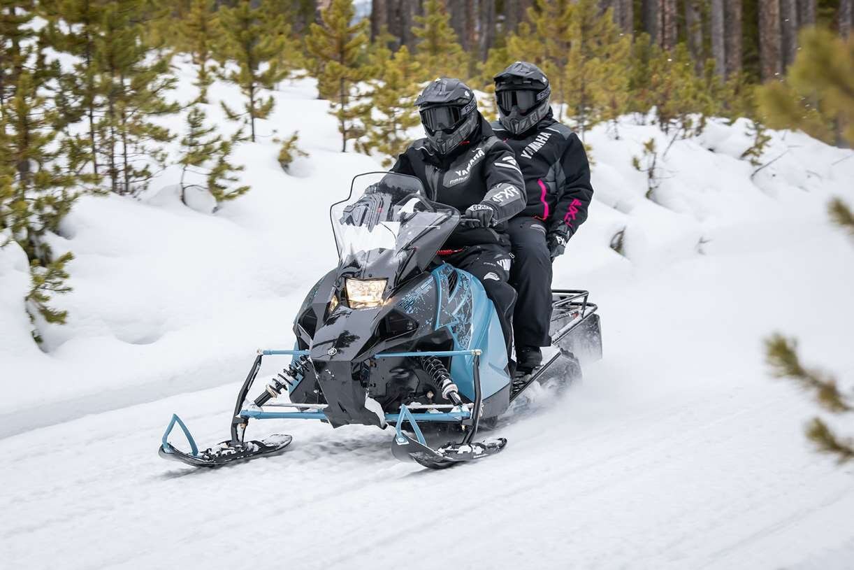 The Yamaha Transporter Lite 2-Up offers all the key features of our full touring snowmobiles in a much lighter package and at a very attractive price. The compact two-stroke, single-cylinder engine generates ample power to keep the pace on trail. Its long 146-inch track excels in soft snow while bridging the gaps on a rough trail for a more comfortable ride. Passenger overload springs are included to adjust the suspension for both single and two-up cruising. The value and performance of the Transporter Lite 2-Up is very hard to beat.