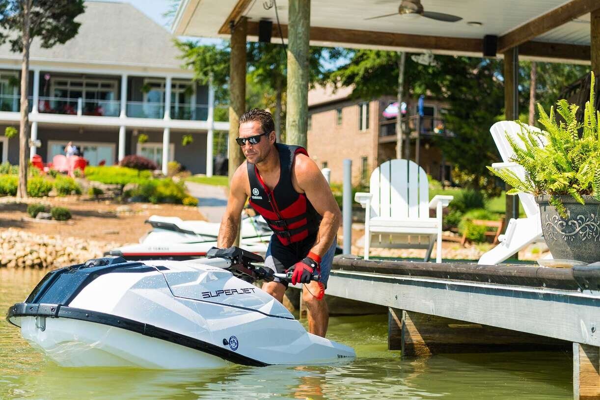 Here to answer the call, the Yamaha SuperJet is ready to challenge the next generation of stand-up riders with a torquey four-stroke Yamaha marine engine and nimble performance hull. No longer reserved for professional racers and requiring a racing licence, the SuperJet was made for freestyle riding.