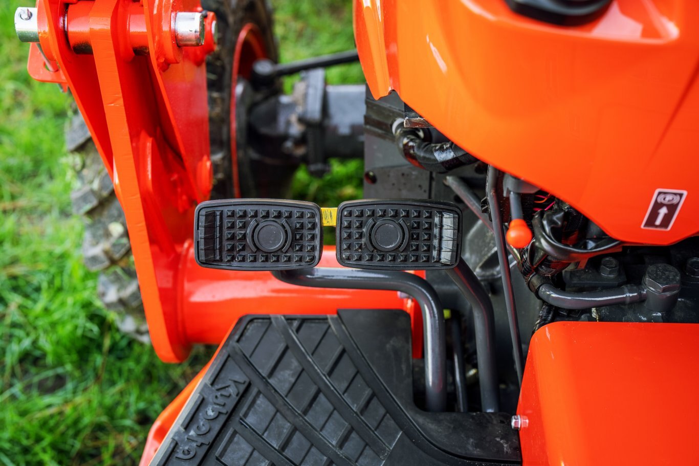 The Kubota diesel engine is designed to perform with reduced noise and vibration for improved overall comfort and operation. For added turning capability, the L02 features dual brake pedals for optional independent left side or right.
