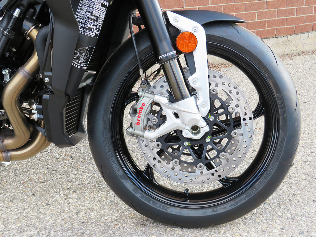SafetyThe state-of-the-art equipment of this model is rounded off by Continental ABS with cornering, vital for ensuring anti-locking even on the turns. The braking system stands out for its power and ease of use: built by Brembo and equipped with 320 mm diameter discs, Brembo Stylema calipers and radial pump for handlebar control.