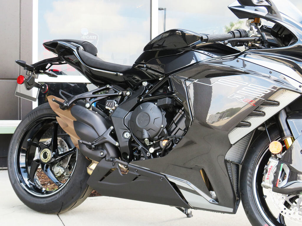 GP AERODYNAMICSThe F3 RR was the subject of a careful study in the wind tunnel, which led to the integration of some aerodynamic elements in the fairing. The objective? To improve performance and increase the efficiency of the engine. The appendages on the sides of the fairing are made of forged carbon fiber and are able to generate a load of 8 kg on the front end at a speed of 240 km/h.