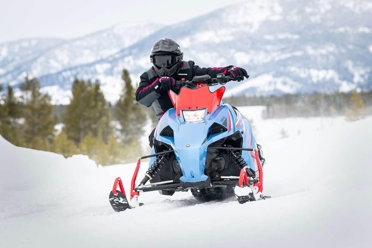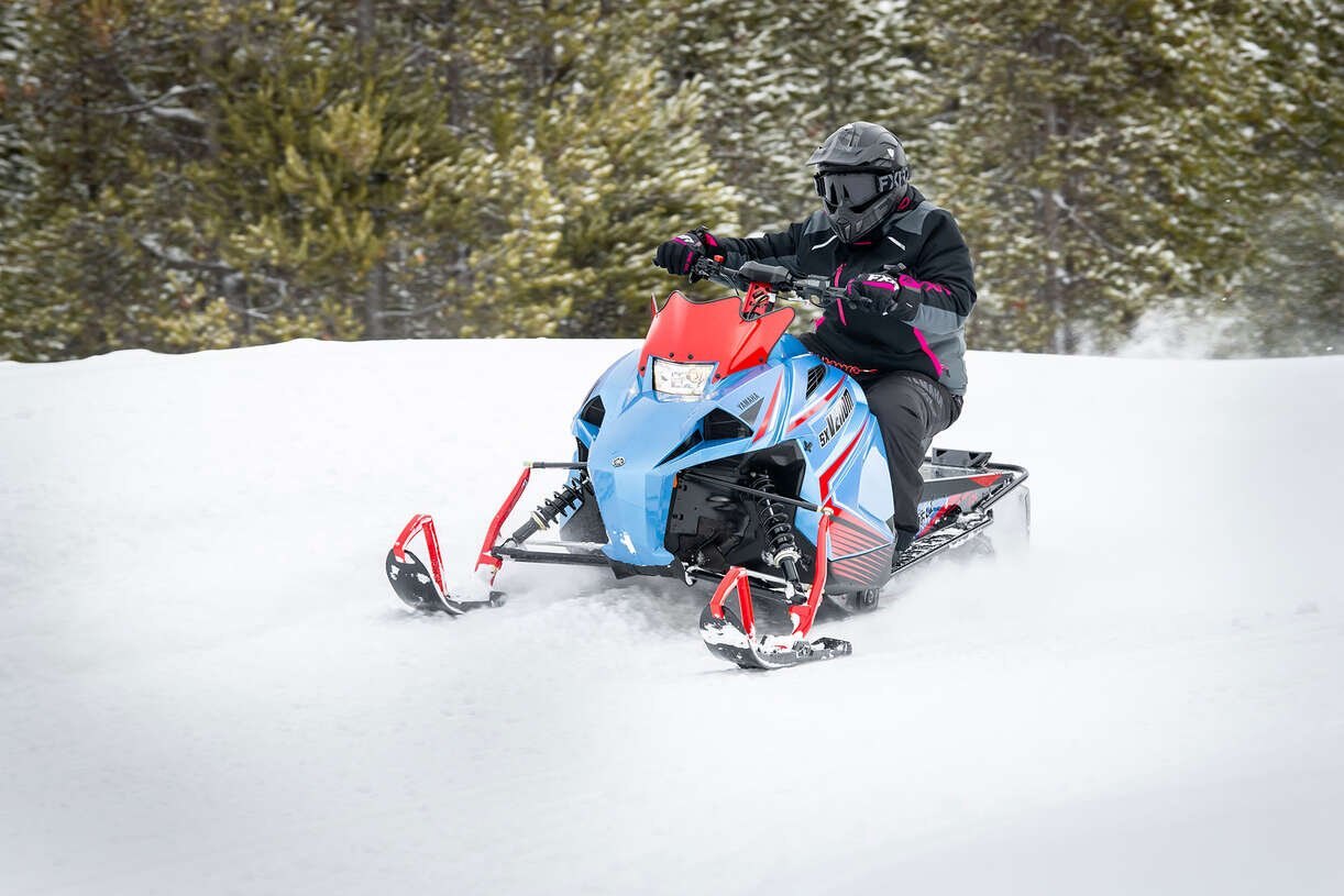 The Venom is a lightweight snowmobile aimed at young, new and returning riders. The fuel-injected, two-stroke 397cc single-cylinder engine features electric start and is propelled by a 121-inch Camso Hacksaw track. Long-travel 'Dual Shock' rear suspension, lightweight alloy chassis, Stryke single keel ski and racy styling combine to create a compact sled that bristles with excitement at a very attractive price.