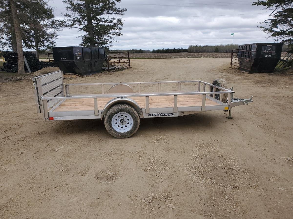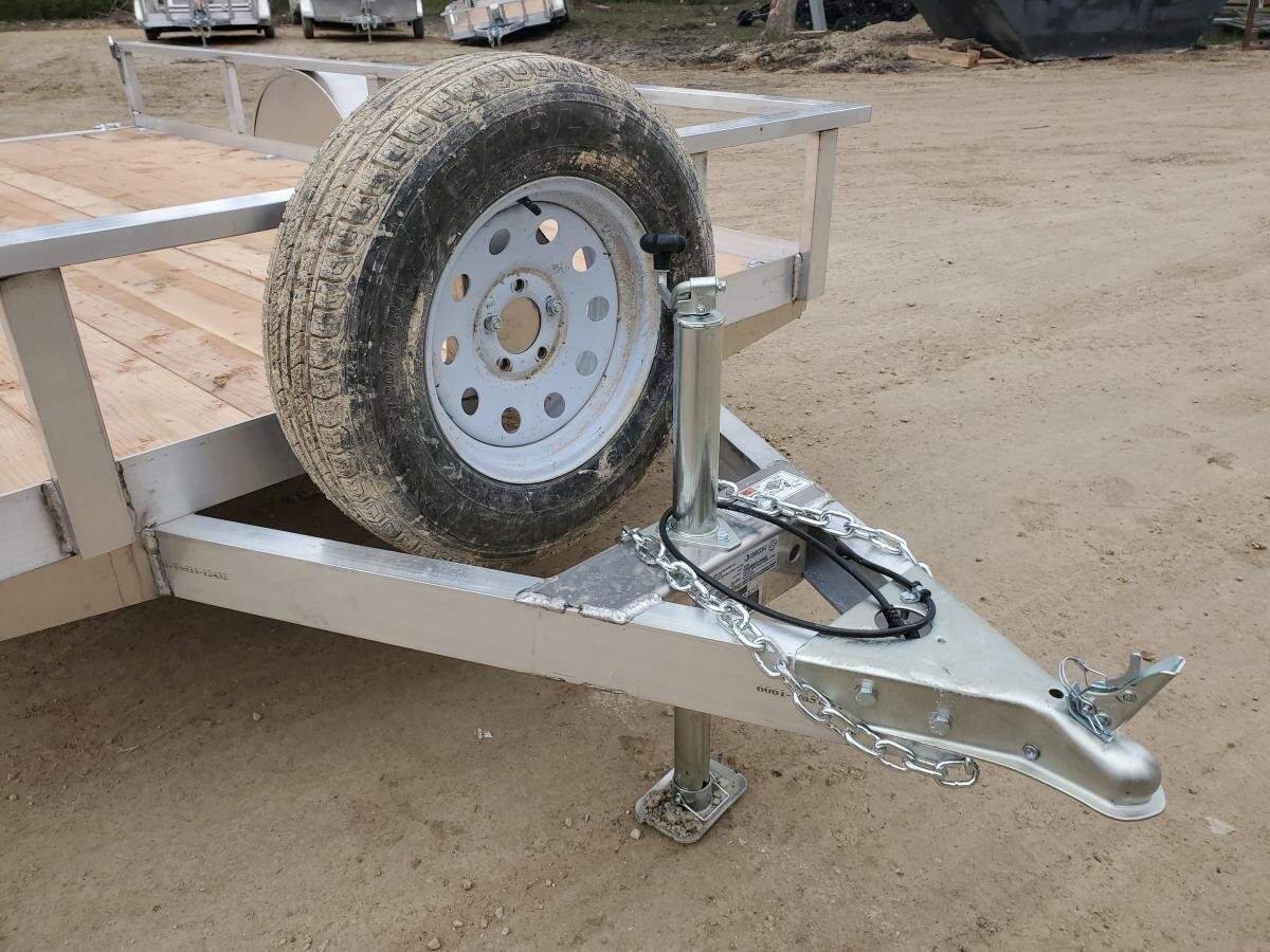 Utility Style, Aluminum Frame, Single Axle, Rail Side Trailer UASR-76x12 Model Displayed Featured trailer has the “Spare Wheel, Steel” Option applied With a rail all around the edge of this trailer it works perfect for containing small loads! For more trailer specs, details, and sizing please see below. |