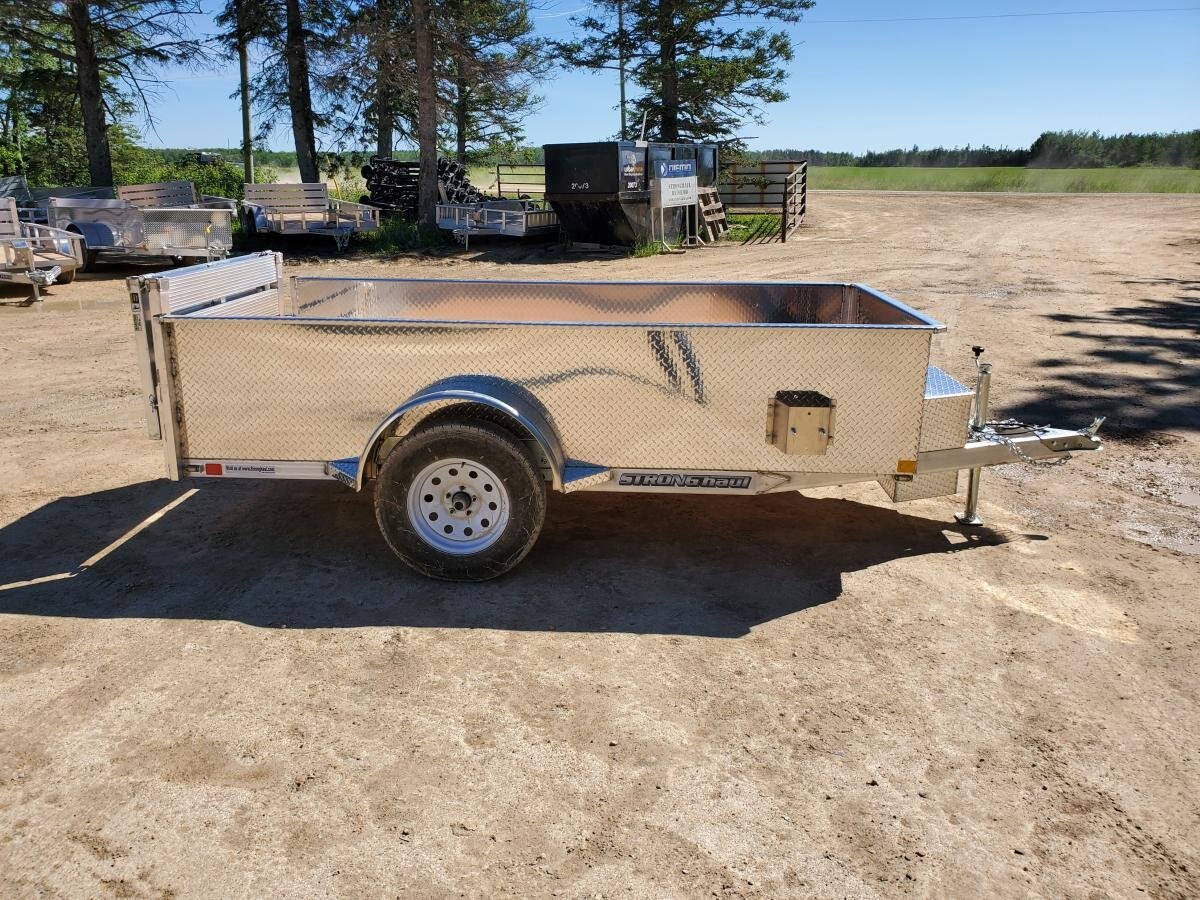 Utility Style, Aluminum Frame, Single Axle, Solid Side Trailer with 24” Sides UASS-60x10 Model Displayed The featured trailer has the “A-frame Mounted, Lockable Handle Tool Box” option applied With 24” sides this model is specific built for hauling loose loads and is Ideal to fit into tight spaces For more trailer specs, details, and sizing please see below. |