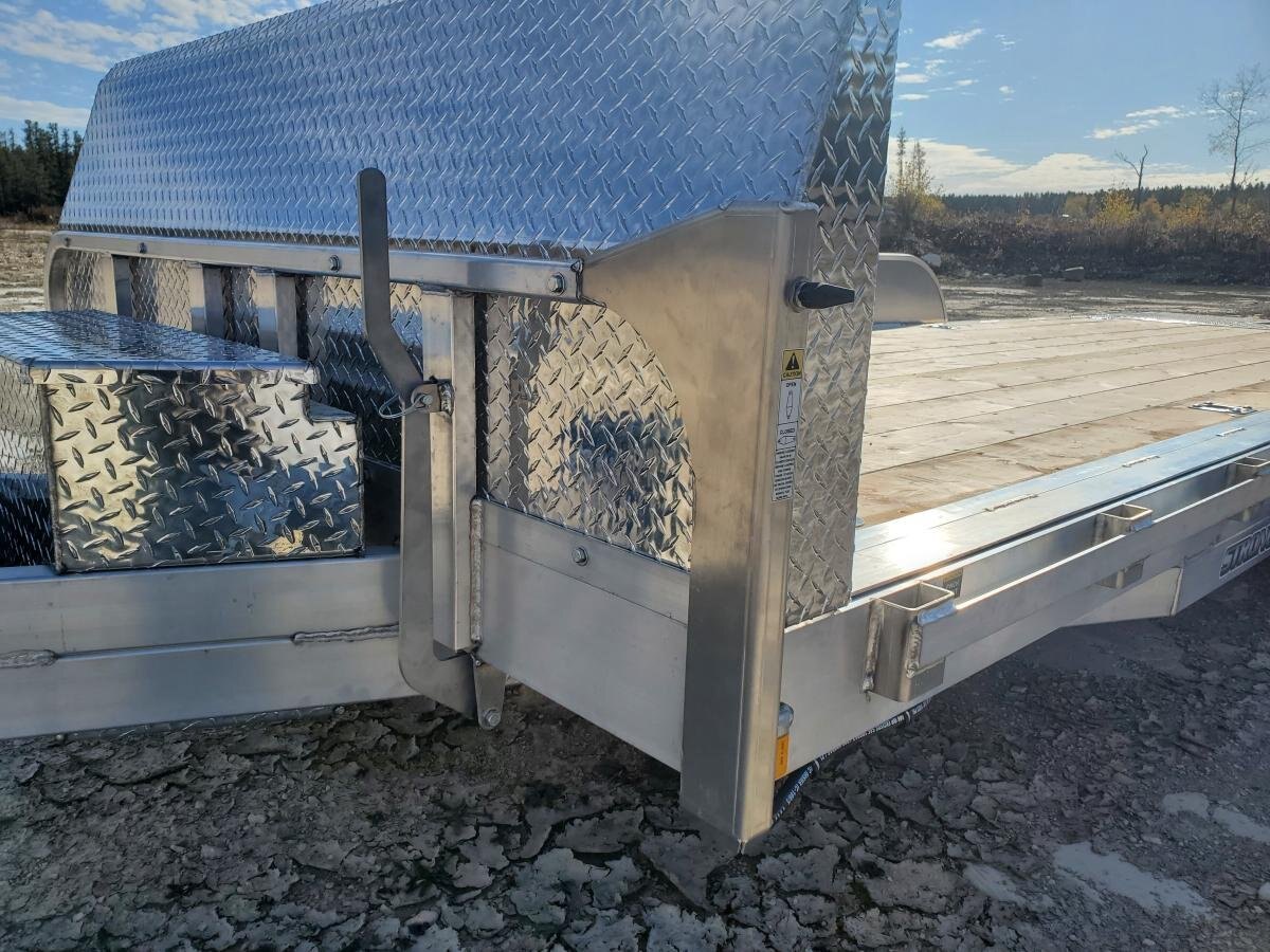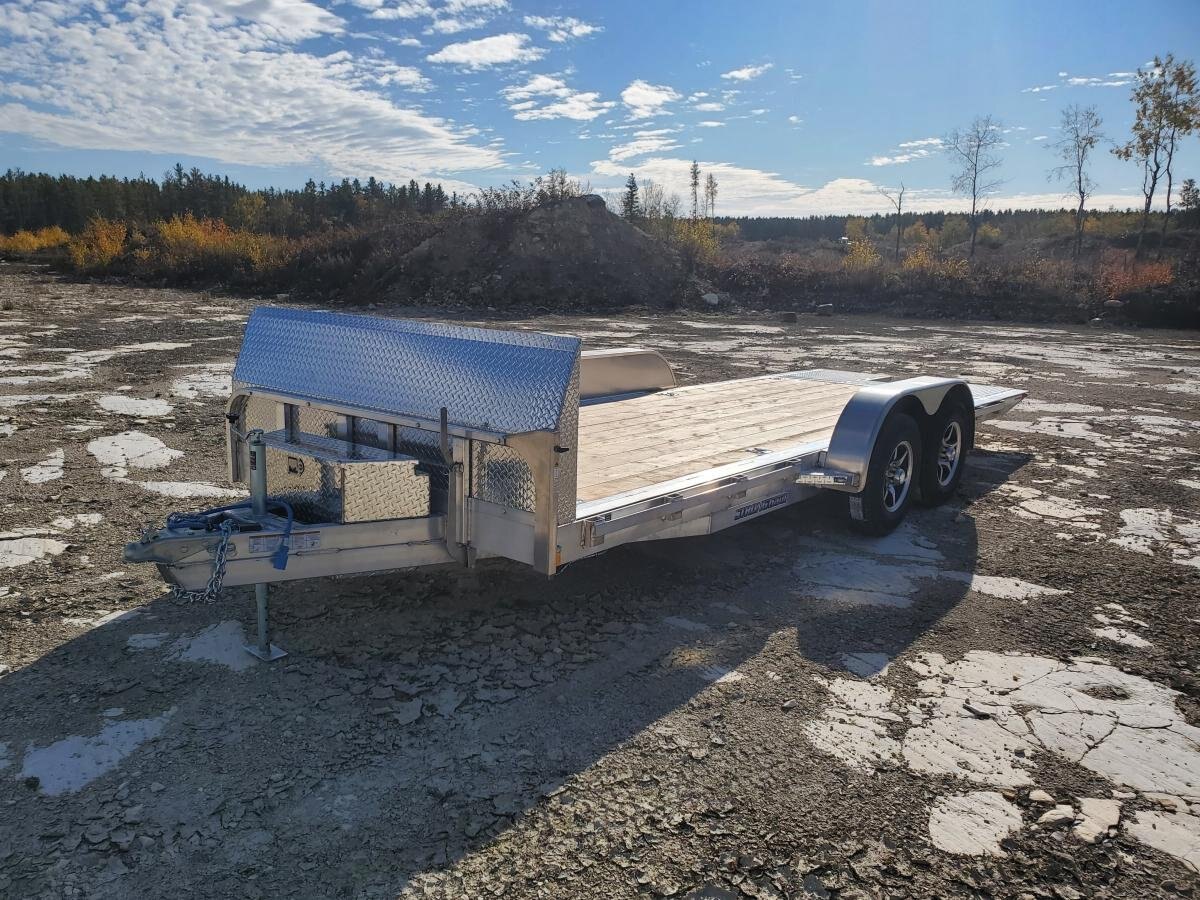 Utility Style, Aluminum Frame, Tandem Axle, Tilt Deck Trailer. UATT-80x21 Model Displayed Featured trailer has the following options applied: 27” Spray Shield Aluminum Wheel Upgrade Aluminum Spare Lockable Tool Box 6,000lb Recessed Lashing Rings For more trailer specs, details, and sizing please see below. If you like a low approach angle for loading as well as not having to deal with ramps, Our gravity tilt deck trailer might be right for you. With a 9 degree loading angle, and a 20” ride height this trailer is ideal for low vehicles |