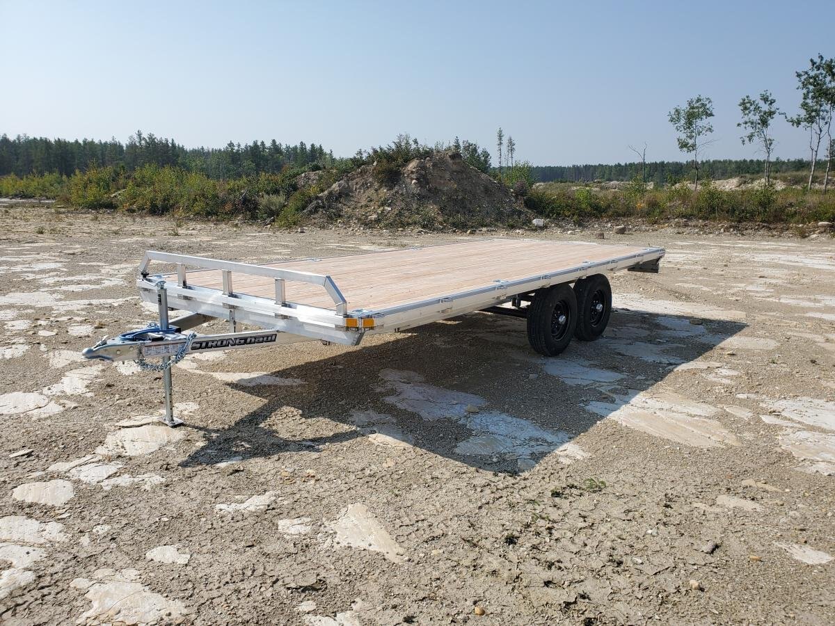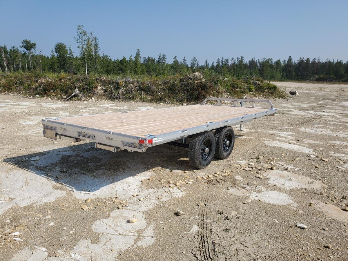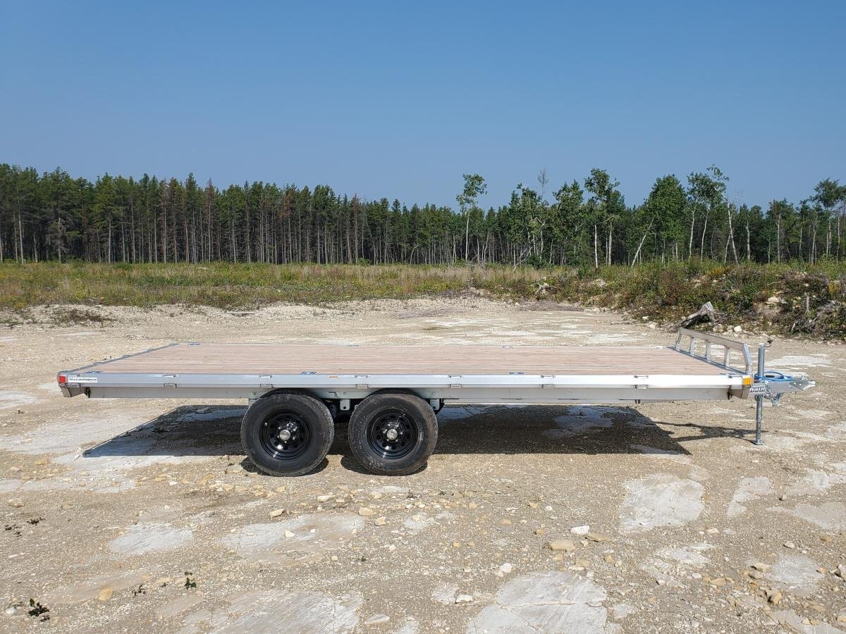 Flat Deck Style, Aluminum Frame, Tandem, Deck-over Axle Trailer FATD-101x18-52 Model Displayed The featured trailer has the following options applied: Front Rail Kit, Bolt In Recessed Lashing Rings If your consistently loading materials or large scale loads with a forklift this is the ideal trailer for you, with the flat deck surface and stake pockets all around there is tons of strap points and space for multiple pallets, long pieces of lumber, or ATV/UTV applications. For more trailer specs, details, and sizing please see below. |