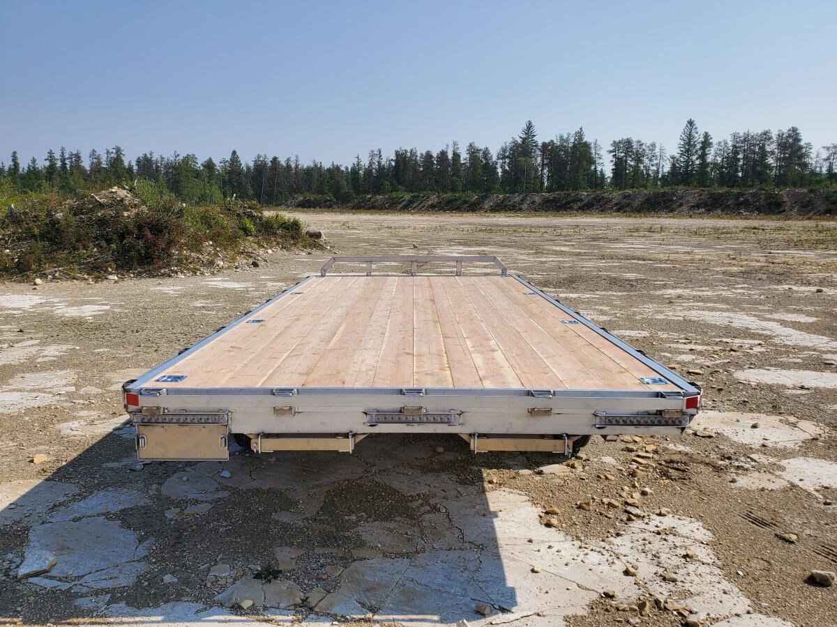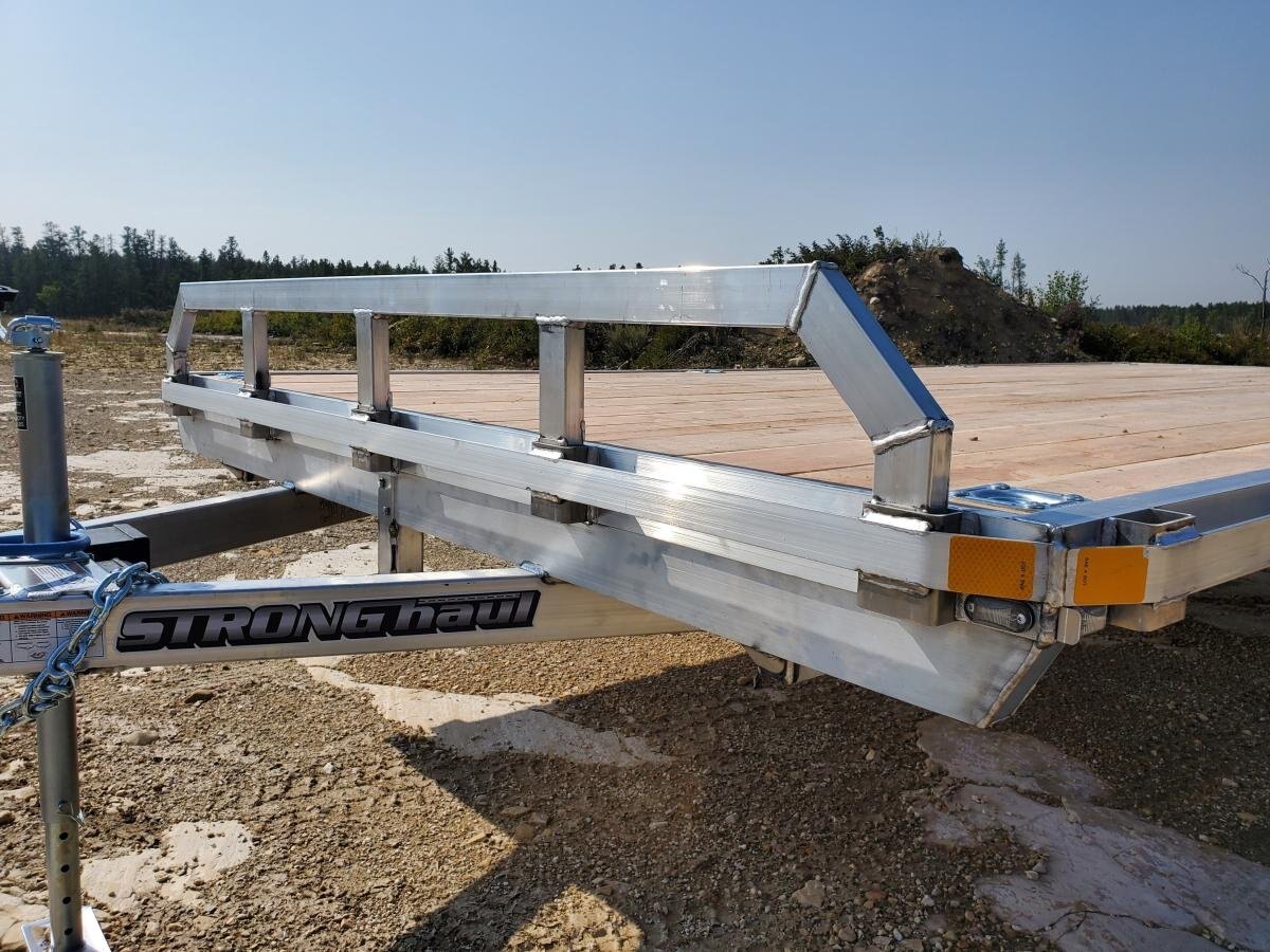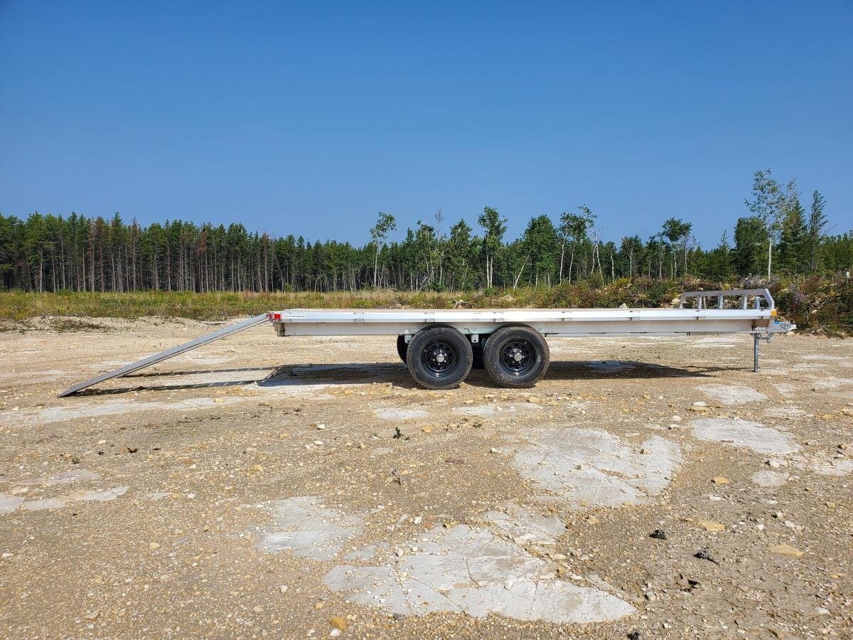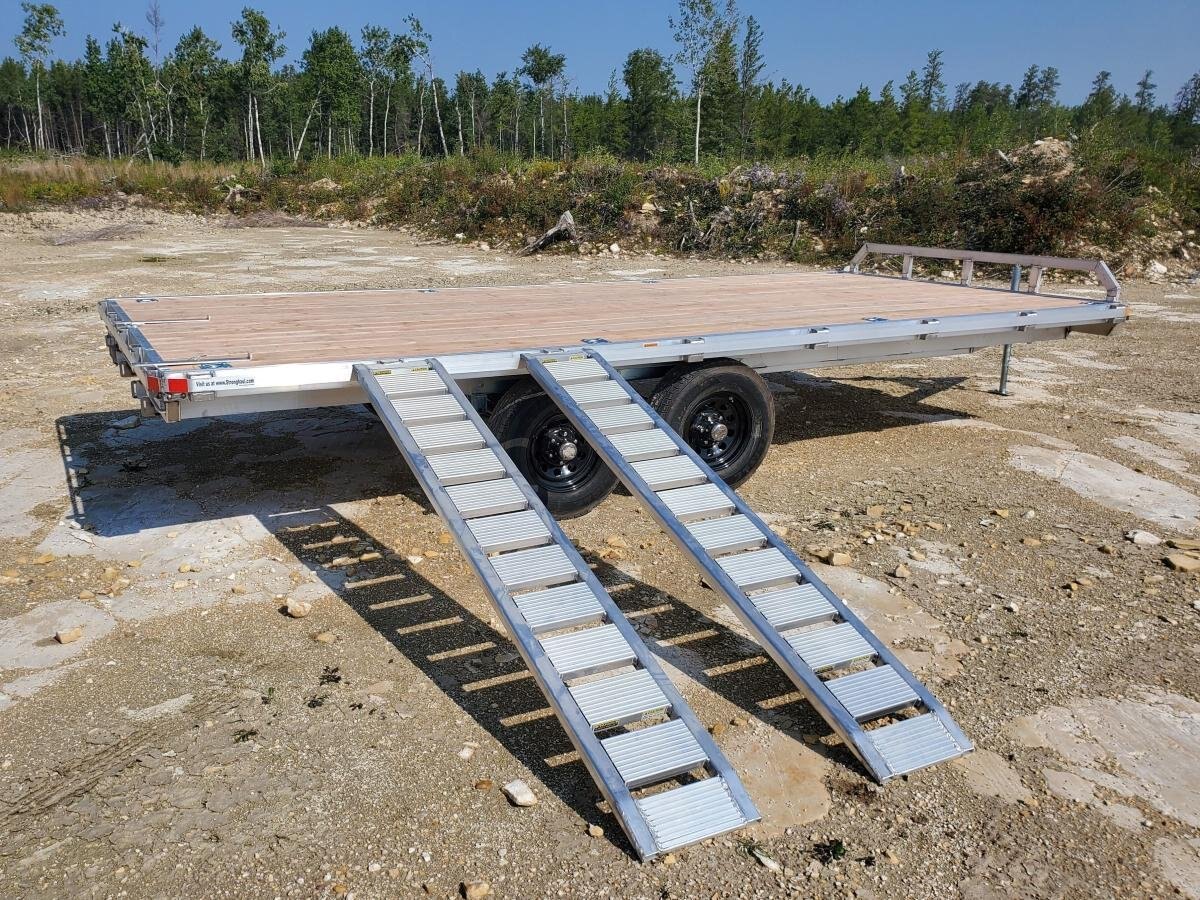 Flat Deck Style, Aluminum Frame, Tandem, Deck-over Axle Trailer FATD-101x18-52 Model Displayed The featured trailer has the following options applied: Front Rail Kit, Bolt In Recessed Lashing Rings If your consistently loading materials or large scale loads with a forklift this is the ideal trailer for you, with the flat deck surface and stake pockets all around there is tons of strap points and space for multiple pallets, long pieces of lumber, or ATV/UTV applications. For more trailer specs, details, and sizing please see below. |