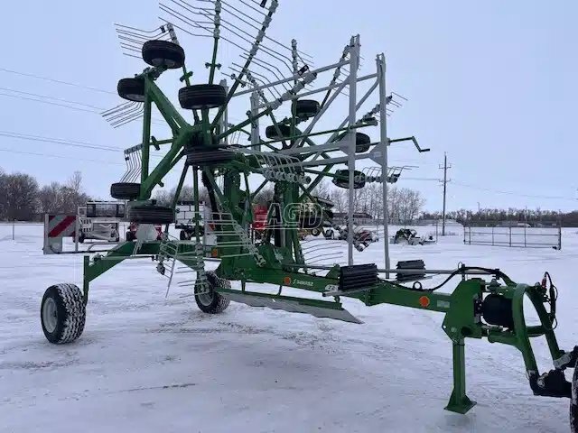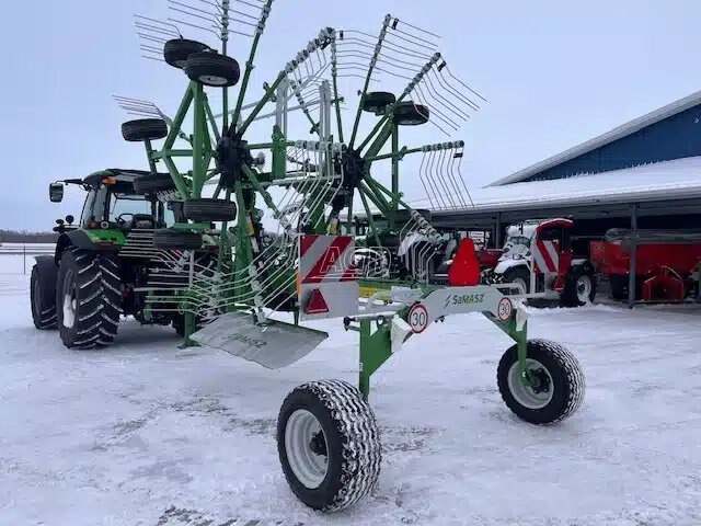 Samasz double-rotor rotary rake. Working width 23'7" - 24'11". Transport width 9'6". 540 PTO, call for more information.