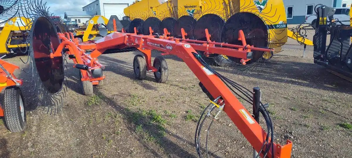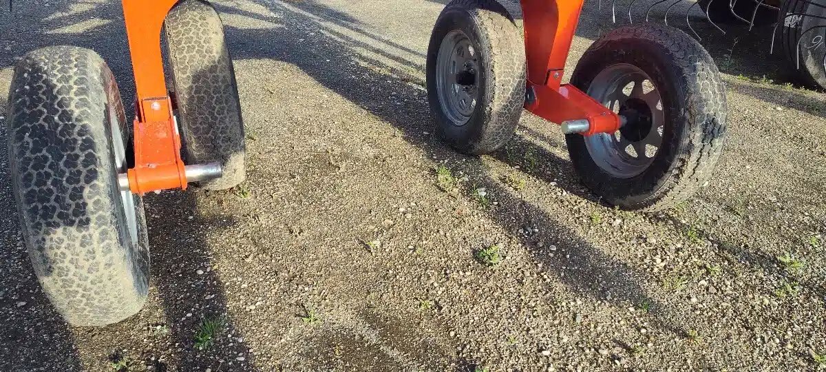 Oscillating axle, wind deflectors, windrowers up to 28ft, wheel diameter 55". Optional divider wheel kit can be added. Only one available.
