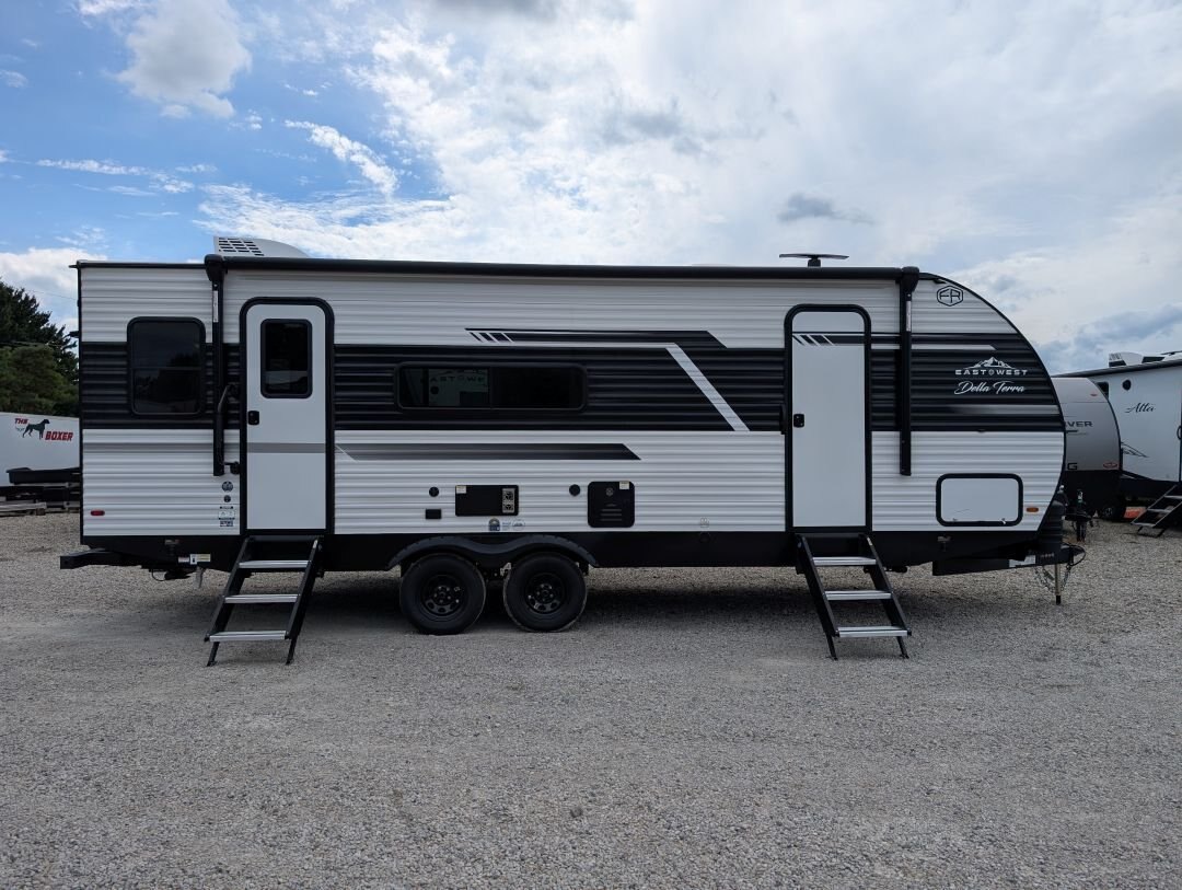 REG: $49,995 SALE: $39,995 The 2026 East to West Della Terra 251RD just landed at our Rodney location! The ideal RV for couples looking to find their escape. With luxurious options and plenty of extras, this unit is dressed to impress. Financing this unit for as little as $75/week OAC. This model comes with the following features: Adventure Outdoor Package - Universal Docking Station w/Battery Disconnect - Water Heater Bypass - ABS Tub Surround - Radial Tires - Fender Skirt - Power Awning w/LED Lights - Outside Shower w/Hot & Cold Water - Winegard® Air 360+ HDTV Antenna WiFi Prep 4G LTE Prep - Backup Camera Prep - (2) MORryde® Solid Step Above Entrance Triple Step - 200W True Solar package - Black Tank Flush - Exterior LED Lights - Detachable Power Cord - Power Tongue Jack w/LED Light - Oversized Exterior Swing Arm Explore Comfort Package - 81 Interior Ceiling Height - 10.7 Cubic Foot Stainless Steel Refrigerator - Cable/Satellite Ready - USB Charging Stations (Beds, Bunks, Tables) - 3-Burner Range w/Glass Cover & Oven - Built In Fireplace - Porcelain Foot Flush Toilet - Interior LED Lights - Window Valence Package w/Night Shades - Seamless Designer Countertops - 2 Zone Sound System With Bluetooth & HDMI Connectivity - Extra Large Dinette Picture Window - Upgraded Congoleum® Designer Linoleum Flooring - Marine Grade Woven PVC Flooring In Slide-Outs *No Carpet* Other Options - Mortise and Tenon Shaker Style Cabinets - 12V Exhaust Fan and Light - Shelving in Overhead Kitchen Cabinets - Wood Drawers w/Furniture Grade Plywood Sides - TV & Cable Prep in Bedroom - Furnace w/Digital Thermostat - 35K BTU Furnace - Strut Lifted Storage Under King Bed - Increased Foot Space at the Foot of Bed - Solid Bedroom Privacy Door - Instant Hot Water Heater - Aluminum rims upgrade - 40 LED Smart TV with Bracket - Electric stabilizer jacks - King Bed - 72 X 80 - Enclosed & Heated Underbelly - Enclosed Holding Tanks - Electric Flush Floor Slide Outs - 15,000 BTU Ducted Air Conditioner w/Quick Cool - Upgraded Interior Design Package Located at 12711 Furnival Road, Rodney ON.
