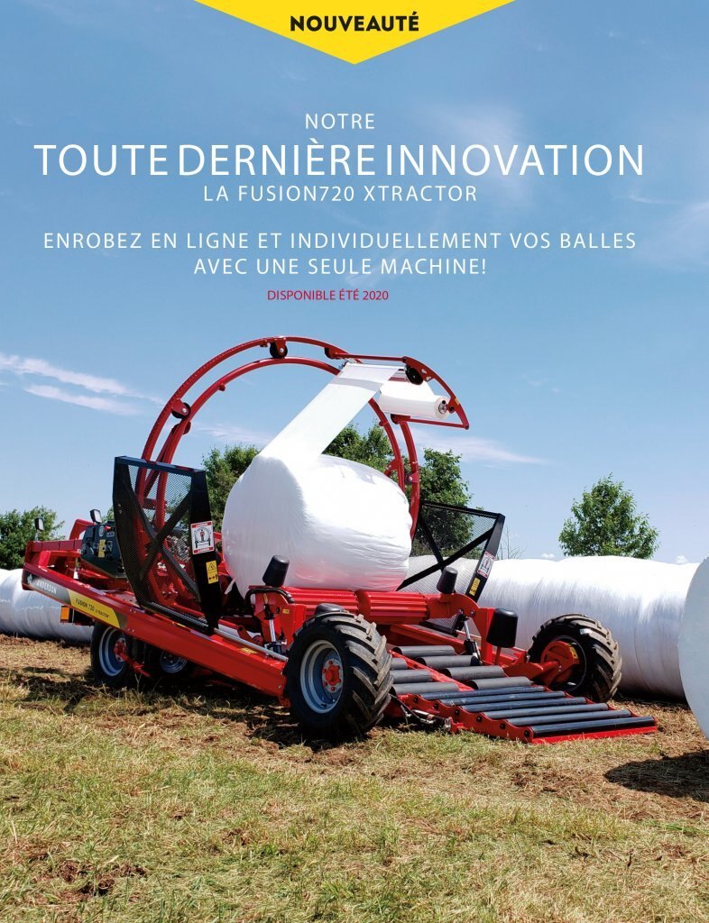 The new Fusion720 xtractor Contractors will particularly appreciate this machine for its versatility to wrap inline as well as individual bales. Lets you optimize and diversify the customer base and increase turnover with a single equipment. The Fusion720 Xtractor also solves the problem of row ends and losses caused by this system. Simply wrap a bale to create a start and end plug, sealing the row perfectly and minimize the losses caused by poor sealing of the ends. For producers who sell a portion of their crop, the Fusion720 Xtractor allows you to wrap inline to feed your own livestock, while saving on film. On the other hand, if your crops exceed the needs of your herd, the excess can be wrapped individually, allowing you to maximize the selling value of your bales by allowing you to sell them without deterioration of its quality. Perfect also when the storage site is limited and does not allow to wrap everything in one place, it is now possible to wrap bales individually with one machine. With the Fusion720 xtractor, you have the best of both worlds Anderson, presents its latest innovation : Versatility and speed |