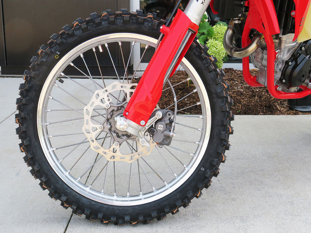 PARTSFast is fun but slowing down is essential, which is why all GASGAS dirt bikes are fitted with high quality Braktec calipers and controls. With a 260mm front disk and a 220mm rear disk, both featuring a GASGAS specific design, braking performance is certainly impressive, which inspires riders to push harder, ride faster, and brake later using the redesigned lever.