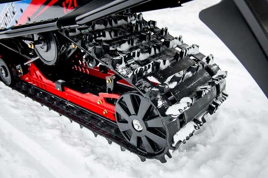 The Venom is a lightweight snowmobile aimed at young, new and returning riders. The fuel-injected, two-stroke 397cc single-cylinder engine features electric start and is propelled by a 121-inch Camso Hacksaw track. Long-travel 'Dual Shock' rear suspension, lightweight alloy chassis, Stryke single keel ski and racy styling combine to create a compact sled that bristles with excitement at a very attractive price.