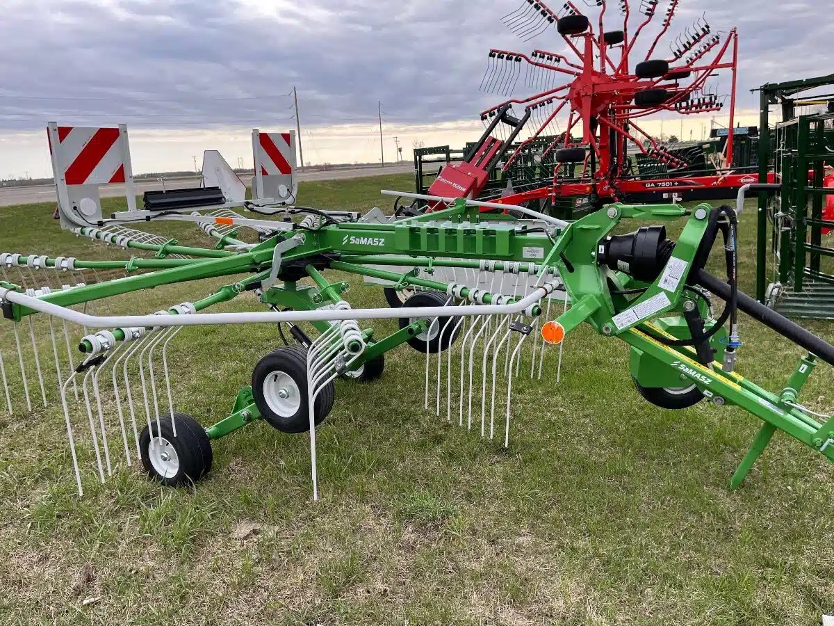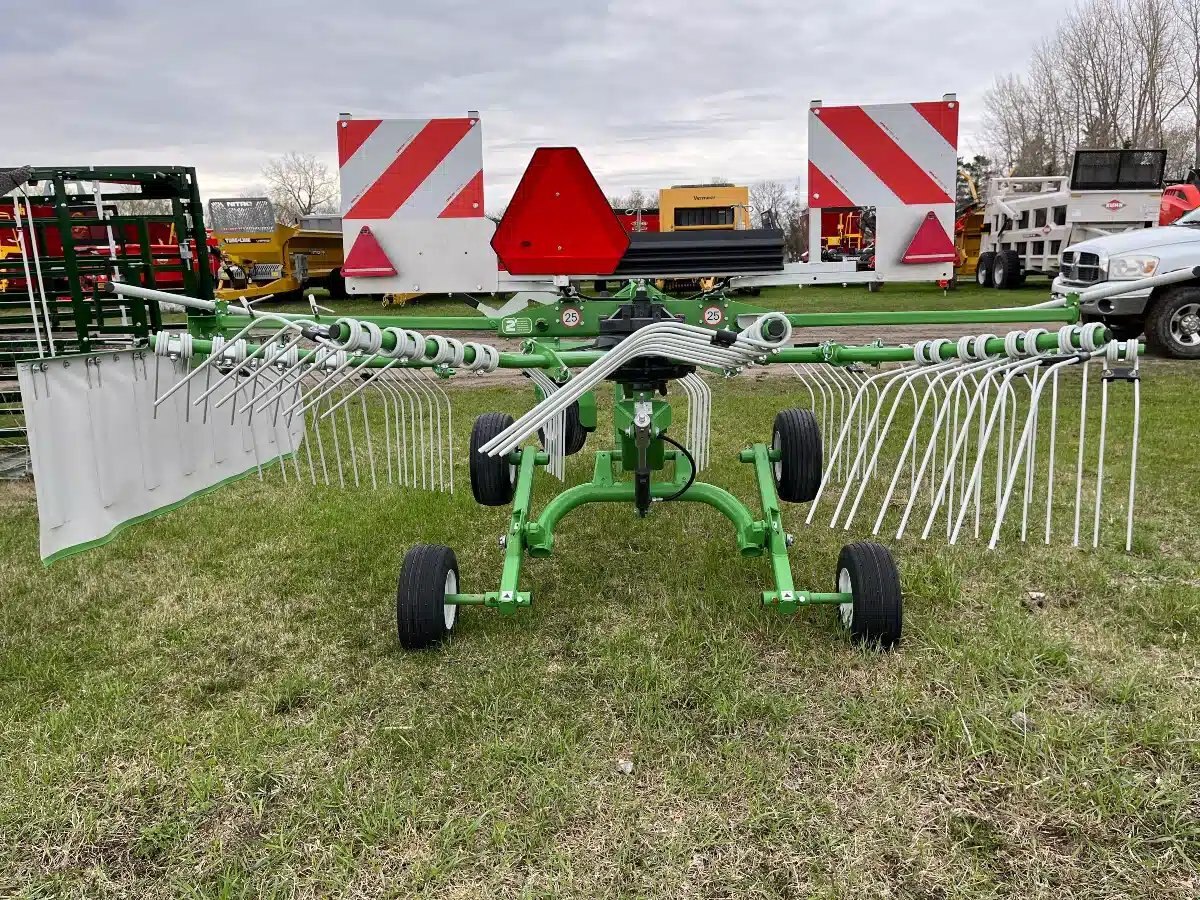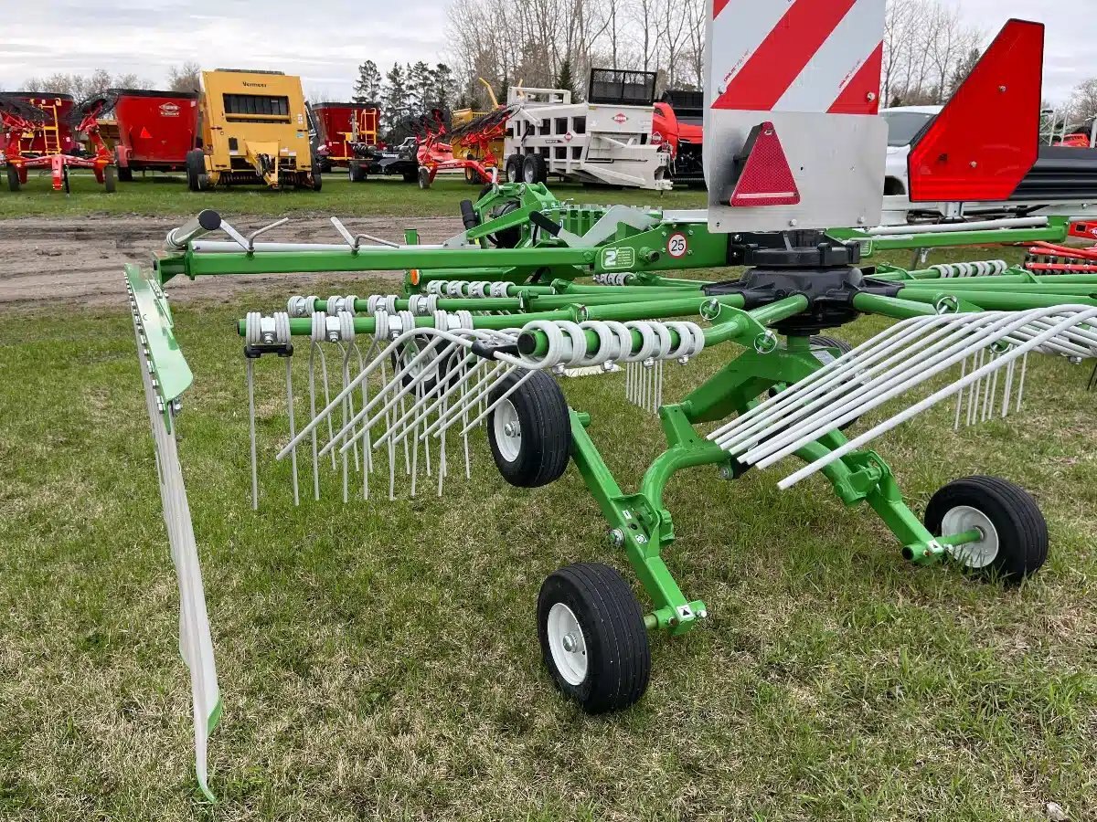 The lightweight design and tandem chassis ensure good ground following. The shape of the tine arms, as well as their arrangement on the rotor, significantly influence windrow formation. Call for more details and to find out the price.