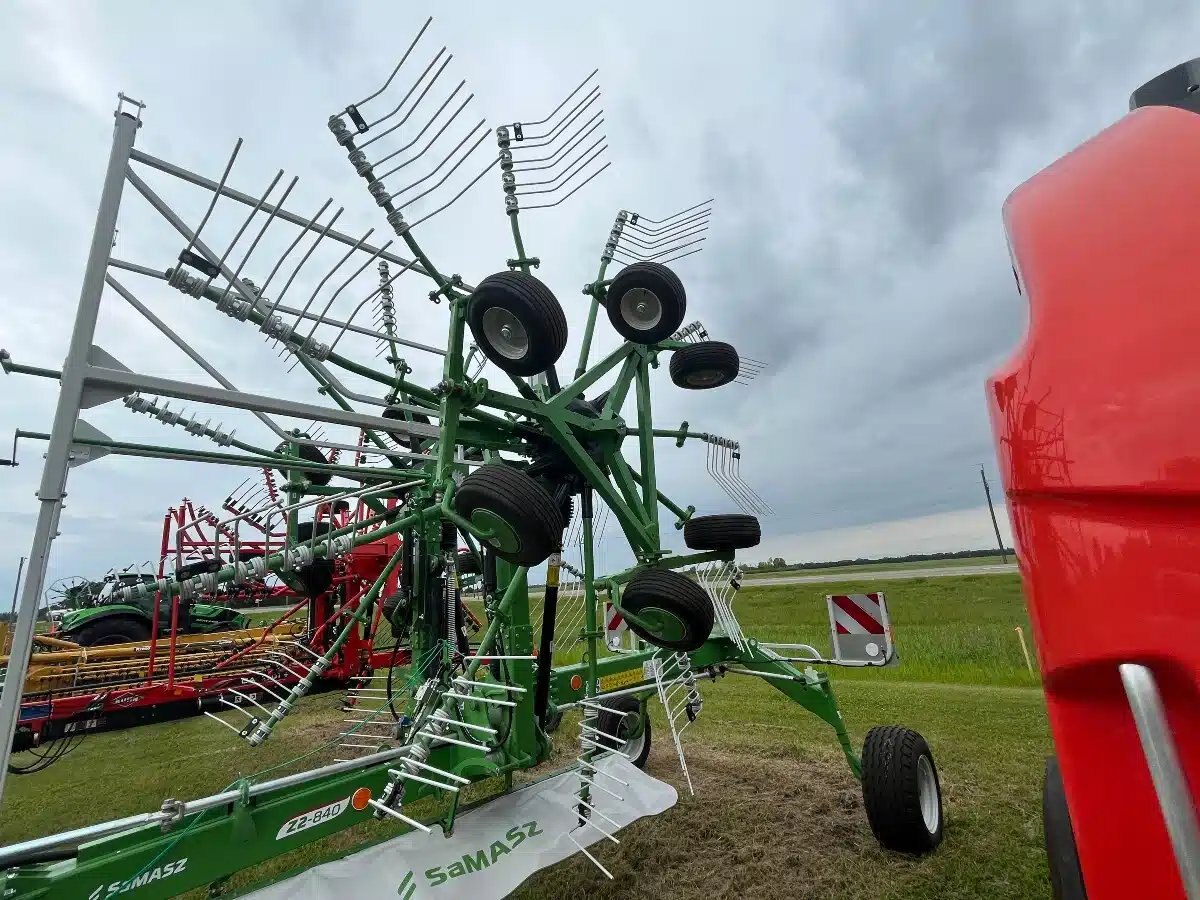 Working width 24'11"-27'7" center windrow, windrow width 3'11"-6'7", rotor diameter with arms 12', arms per rotor 11, teeth per arm 4, 540 PTO, 3pt cat 2, hydraulic couplings 1 single acting 1 double acting, transport width/height 9'8"/12'3", rear steering follows the tractor, Call for more details and price