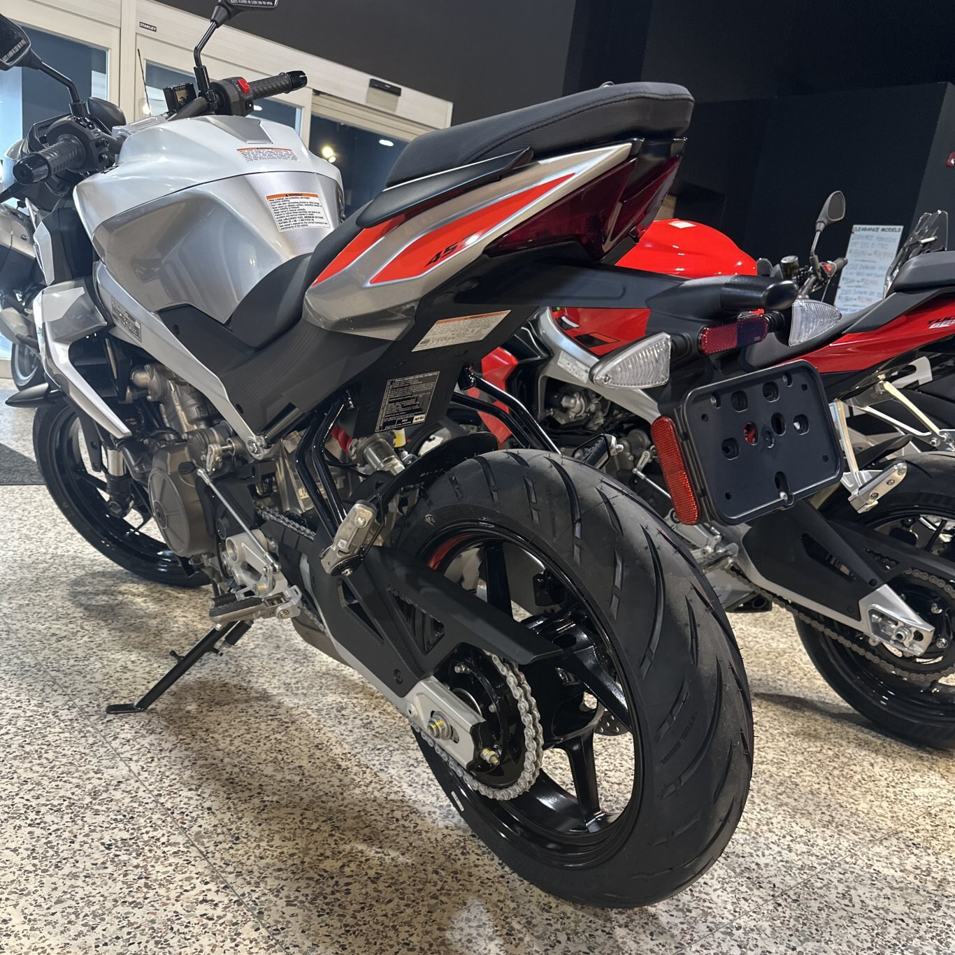 Designed to redefine performance and riding pleasure within the category. Pure adrenalin on two wheels, with distinctive style and the very best technology combining to deliver unrivalled control and thrills. Welcome to the most anti-conformist and irreverent Tuono to be found. A true Naked that maintains the key Tuono values and characteristics, designed for a new way for young motorcyclists to get around.