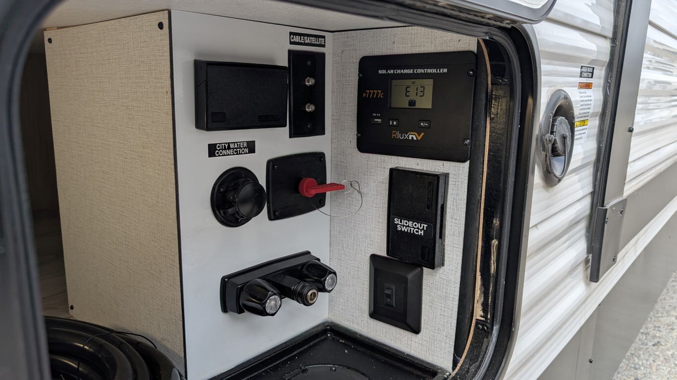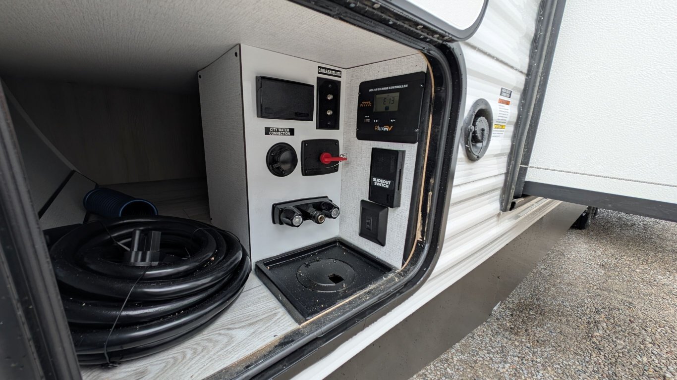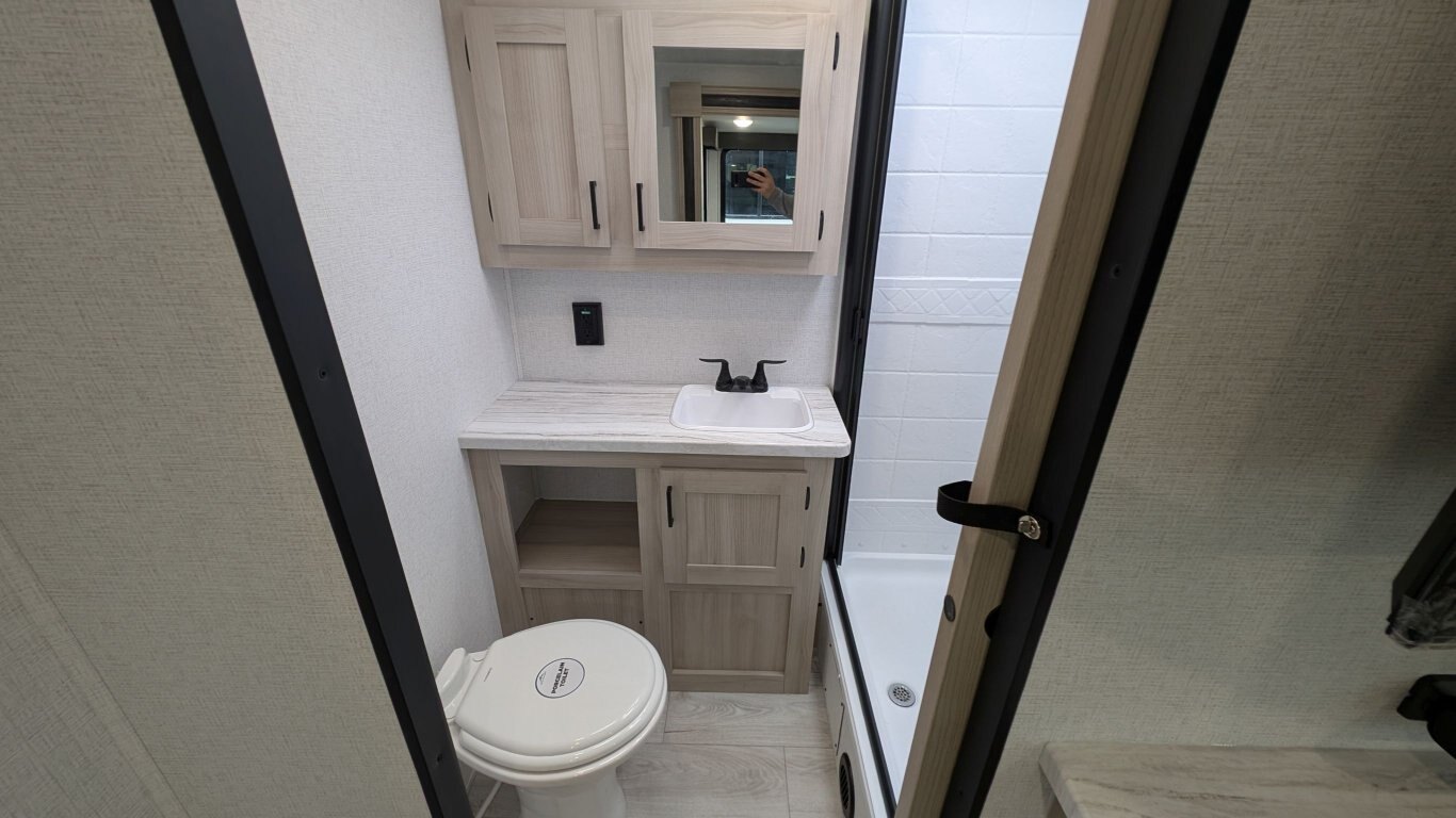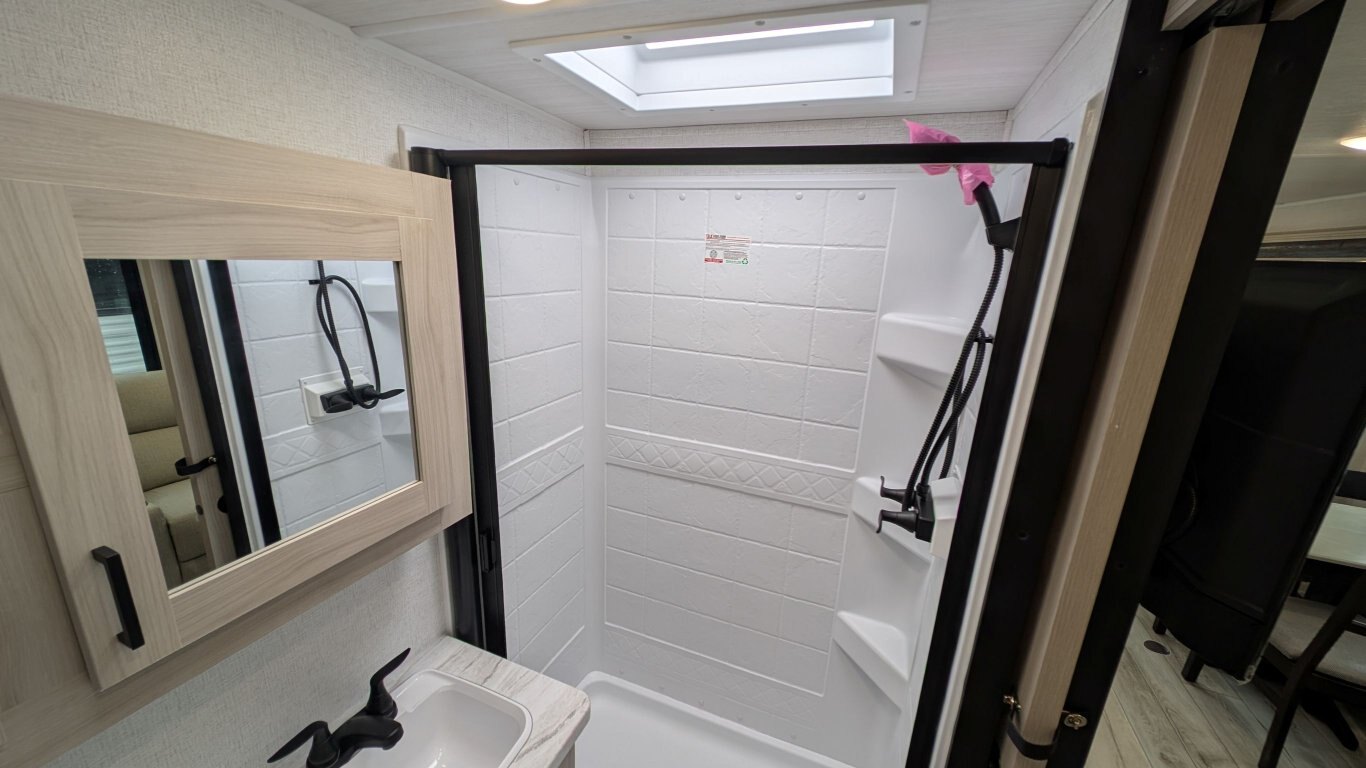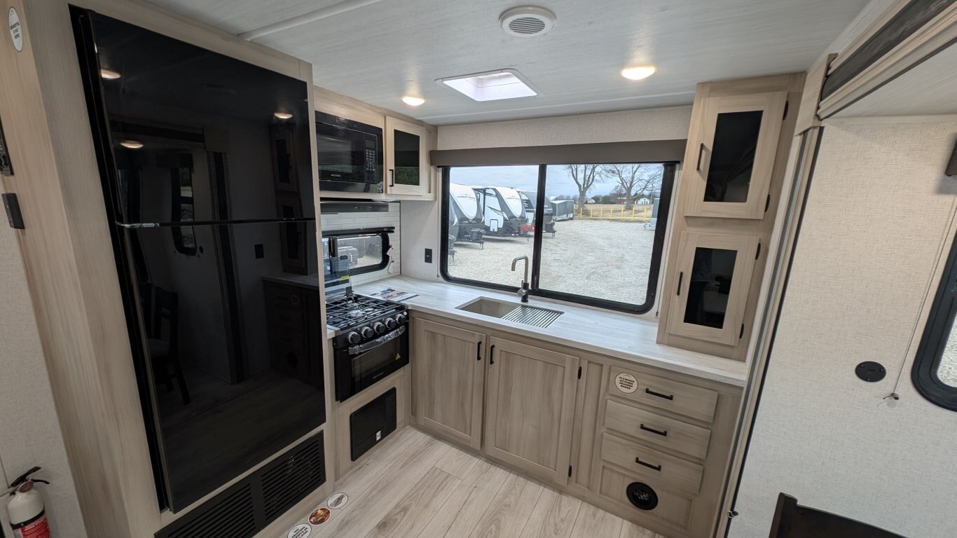 REG: $52,995 SALE: $45,995 The 2025 East to West Della Terra 263RK travel trailer is designed for comfort, convenience, and adventure. It features an 81” interior height, a king-size bed, and an upgraded interior design package featuring Odali Linen interior decor. Financing available for as low as $95/week OAC. This unit features the following options: The Explore Comfort Package includes a 10.7 cu. ft. 12V refrigerator, 3-burner range with oven, built-in fireplace, seamless pressed countertops, porcelain foot flush toilet, and a 35,000 BTU furnace. Enjoy large tinted picture windows, USB charging stations, LED lighting, and a solid bedroom door. The Adventure Outdoor Package enhances functionality with a universal docking station, tankless water heater, power awning with LED lighting, outside shower, backup camera prep, solid entry steps, solar prep, and an RV grill quick disconnect. It also includes a black tank flush, power tongue jack with LED light, and a detachable power cord. The Base Camp Package adds durability and efficiency with automotive deposition coating, heated and enclosed holding tanks, flush floor slides (no carpet), a 15,000 BTU ducted A/C with Quick Cool, and magnetic baggage door catches. Additionally, this unit comes with a 40” Smart TV, electric power stabilizer jacks, 200W solar package, Theatre seating, a free-standing dinette, and a spare tire and carrier for added peace of mind.
