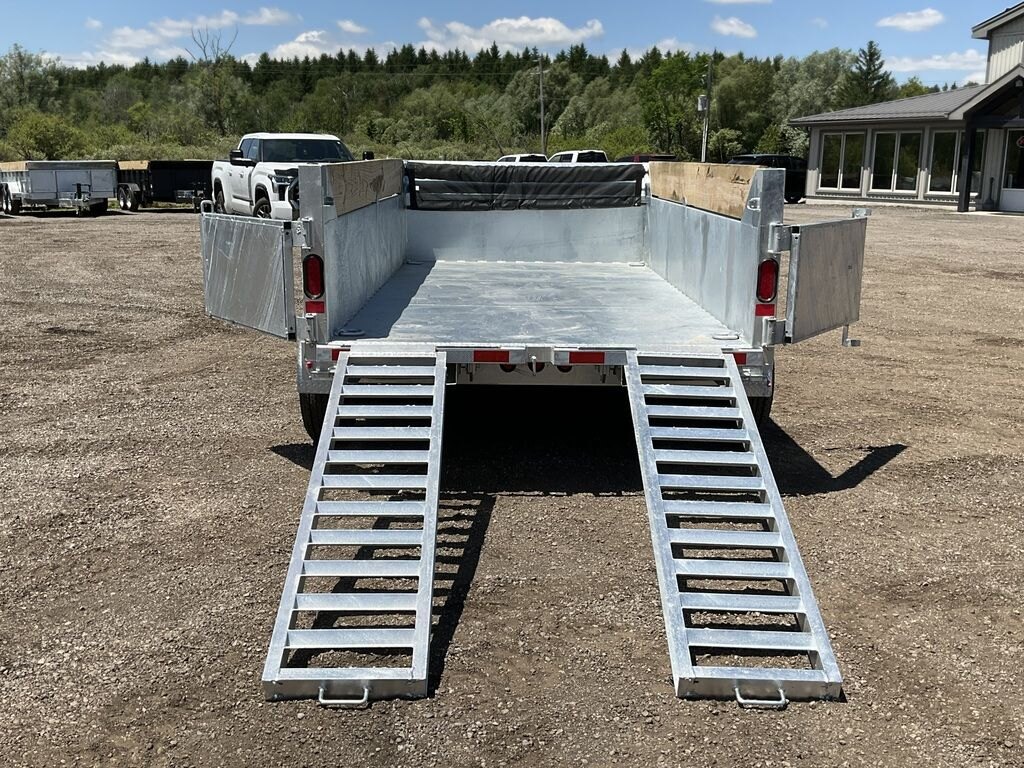 10,800LB GVWR, 2 5200LB Axles with Easy Lube Spindles, Slipper Spring Suspension, 15 Inch Radial Tires, Electric Brakes on Both Axles, 12,000LB Drop Leg Jack, 3000 PSI Hydraulic Power Pack, 20' Hand Remote and Wireless Remote, 5 Inch Hydraulic Cylinder and Scissor Hoist, Interstate Extreme Cycle Battery and Plus in Charger, Lockable Toolbox, 20 Inch Sides Plus 11 Inch Wood Plank, Barn Doors with Cam Lock, Shielded Tarp and Roller, 22 Inch Deck Height, Heavy Gauge Floor Upgrade, Ramp Kit, HD Treadplate Fender Upgrade, 52 Inch Tongue Length, 4 HD Welded in D-Rings, Spare Tire Mount, Rubber Mount Sealed LED Lighting, Full Sealed Wire Harness, Galvanized