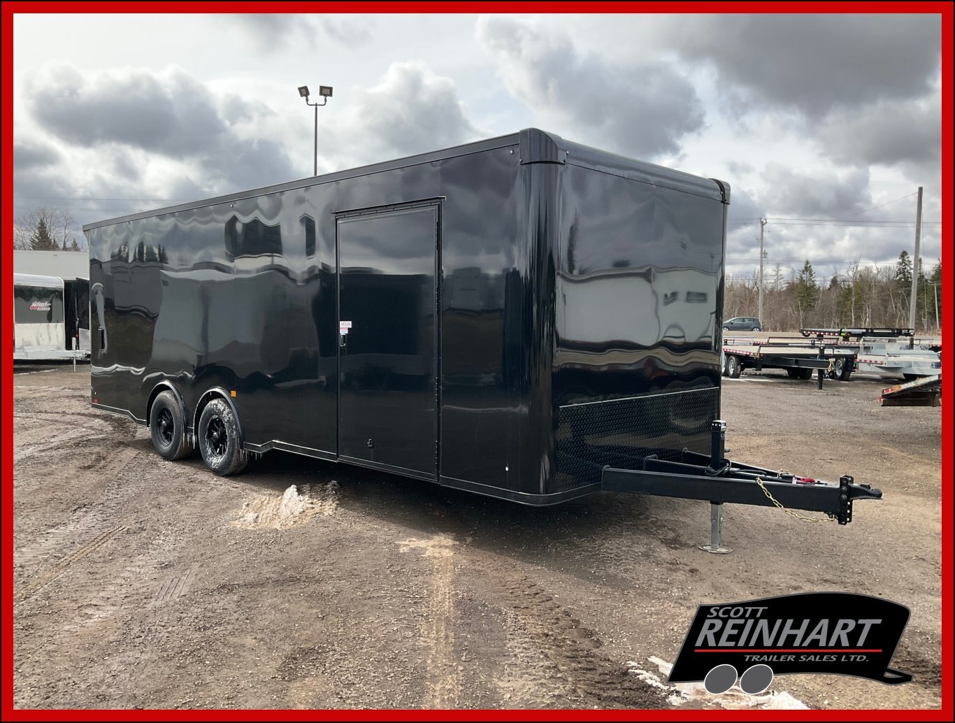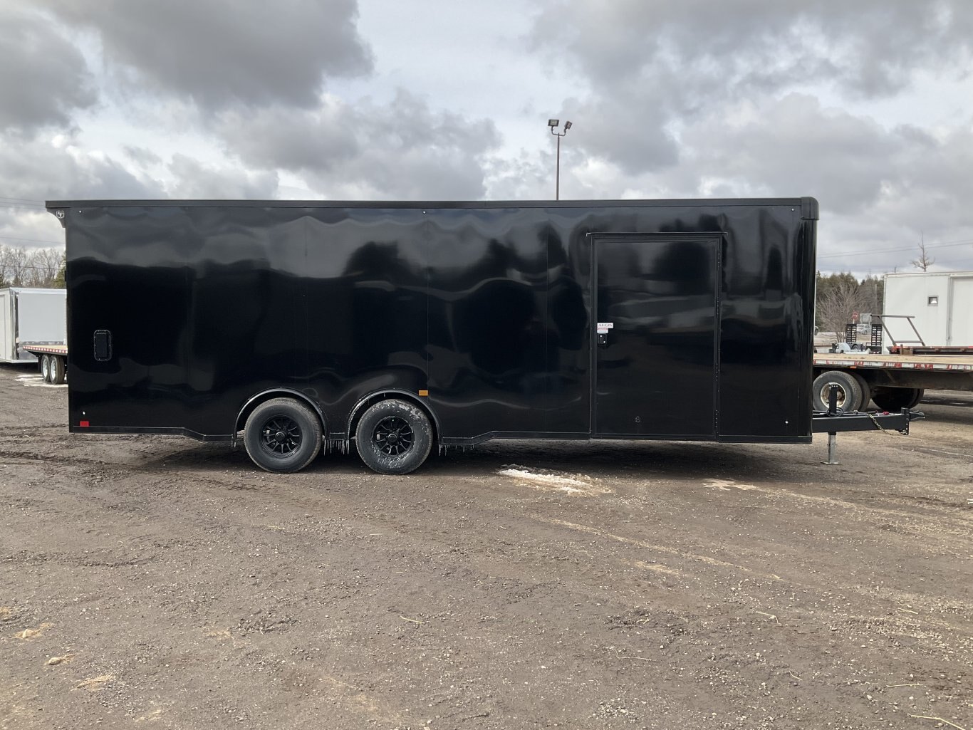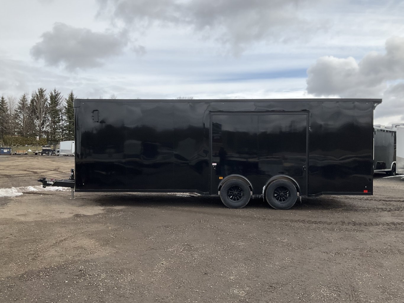 9990LB GVWR, 2 5200LB Torsion Spread Axles, Electric Brakes on Both Axles, 16 Inch Radial Tires, Aluminum Wheels, 84 Inches Tall, .030 Inch Black Screwless Exterior, Black Out Package with Bullnose Trim and Cast Corners, 48 Inch Integrated Beaver Tail, 46 Inch Side Man Door with Inside Step, Breakout Escape Door, Rear Ramp Door with Steel Flip and Cable Assist, Line Walls and Ceiling in White Vinyl, Rubber Coin Floor and Ramp, Seamless Aluminum Roof, 16 Inch On Centre Floor/Walls/Roof Bows, 2 Salem Wall Vents, 4 12V LED Dome Lights and Switch, Rear Spoiler with 2 LED Lights, 3 Wall Switches, 6 Recessed HD D-Rings Tie Downs, 24 Inch Stone Guard, Adjustable 2-5/16 Coupler, 7000LB Drop Leg Tongue Jack with Sand Pad, 2 Additional LED Clearance Lights, Integrated LED Back Up Lights, LED Exterior Lighting