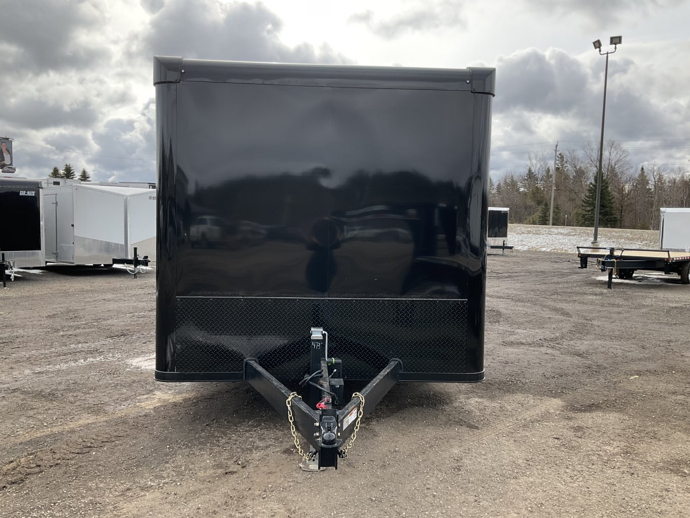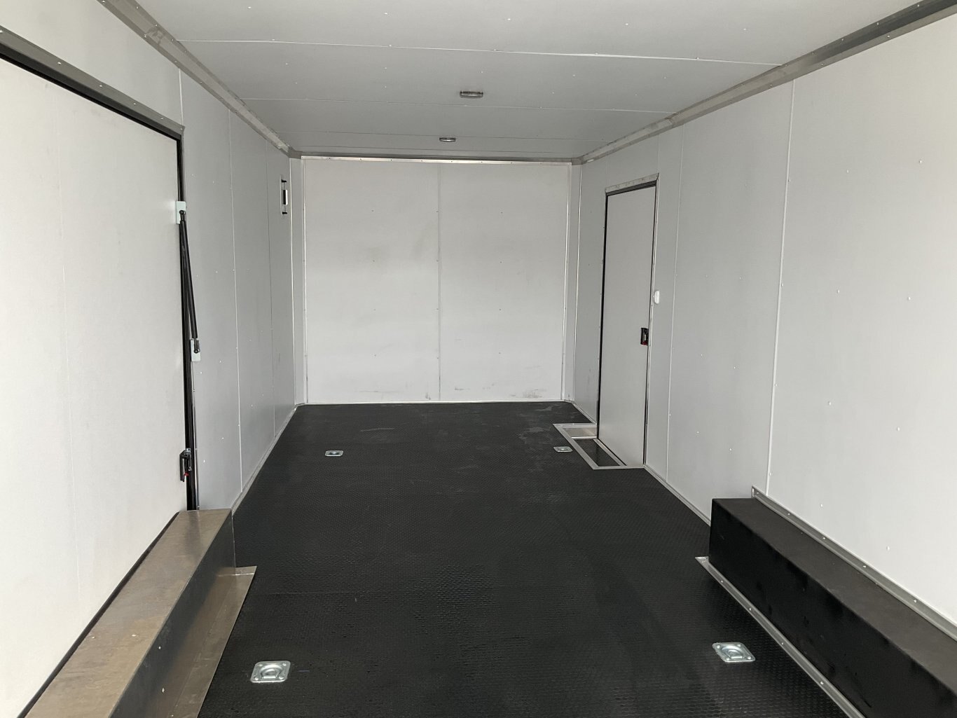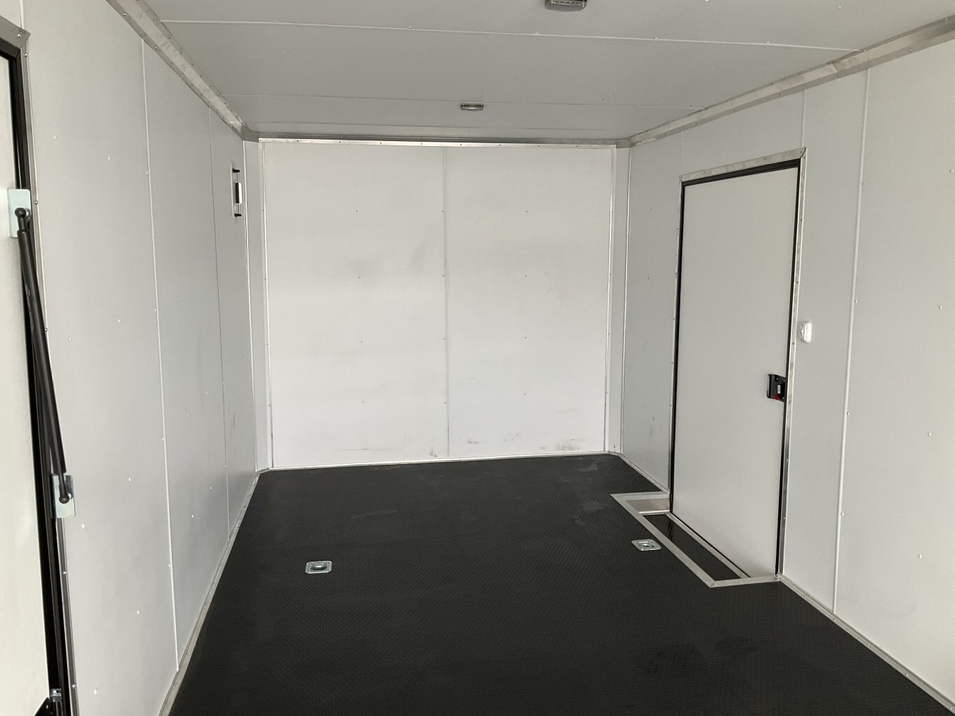 9990LB GVWR, 2 5200LB Torsion Spread Axles, Electric Brakes on Both Axles, 16 Inch Radial Tires, Aluminum Wheels, 84 Inches Tall, .030 Inch Black Screwless Exterior, Black Out Package with Bullnose Trim and Cast Corners, 48 Inch Integrated Beaver Tail, 46 Inch Side Man Door with Inside Step, Breakout Escape Door, Rear Ramp Door with Steel Flip and Cable Assist, Line Walls and Ceiling in White Vinyl, Rubber Coin Floor and Ramp, Seamless Aluminum Roof, 16 Inch On Centre Floor/Walls/Roof Bows, 2 Salem Wall Vents, 4 12V LED Dome Lights and Switch, Rear Spoiler with 2 LED Lights, 3 Wall Switches, 6 Recessed HD D-Rings Tie Downs, 24 Inch Stone Guard, Adjustable 2-5/16 Coupler, 7000LB Drop Leg Tongue Jack with Sand Pad, 2 Additional LED Clearance Lights, Integrated LED Back Up Lights, LED Exterior Lighting