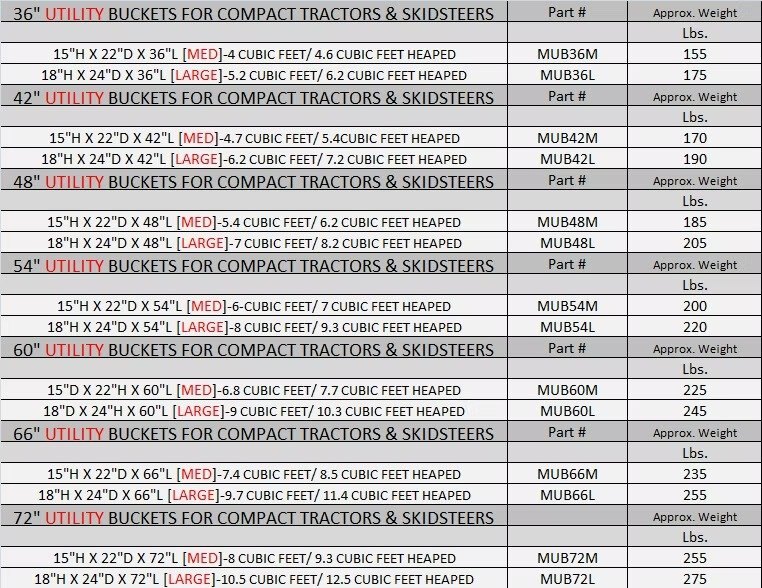 Utility Buckets for compact tractors & skid steers.