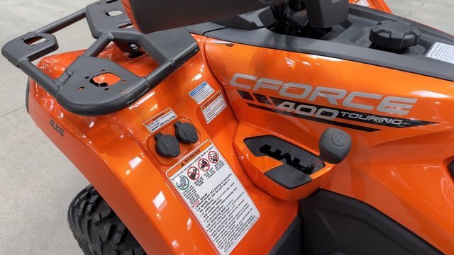 No road limits with the 2024 CFMOTO CForce 400 Touring in bold Lava Orange. Built for both work and weekend adventure, this mid-size ATV packs a punch with its 400cc liquid-cooled engine, CVTech transmission, and selectable 2WD/4WD for confident handling on any terrain. With touring-style comfort, a passenger backrest, and rugged racks for hauling gear, it’s ready for wherever the trail takes you. The aggressive Lava Orange finish turns heads while full LED lighting, independent suspension, and electric power steering ensure a smooth, responsive ride. Whether you\'re hitting the backwoods, the job site, or just having fun, the CForce 400 Touring delivers unmatched value and performance, starting at just $104 bi-weekly.