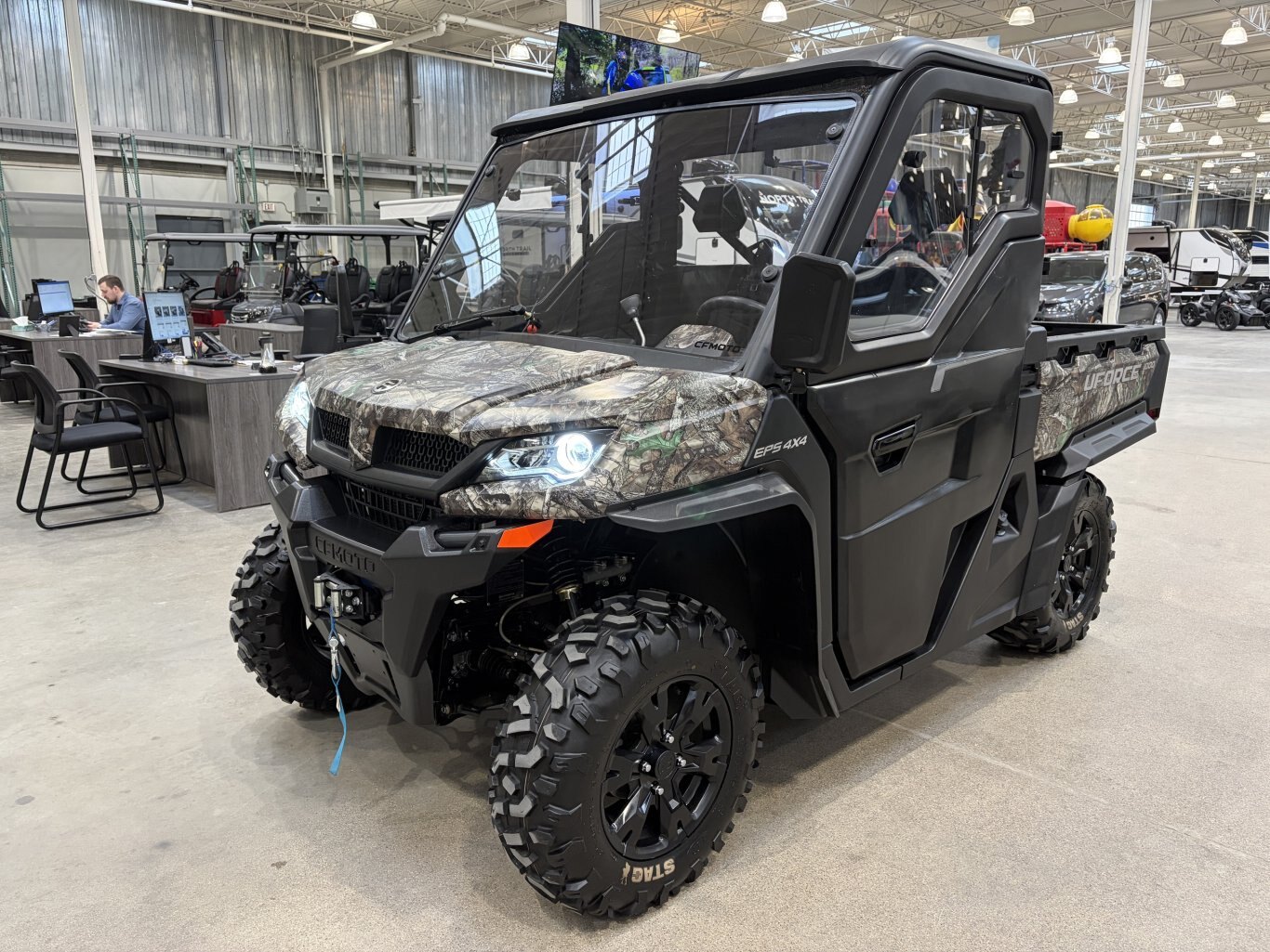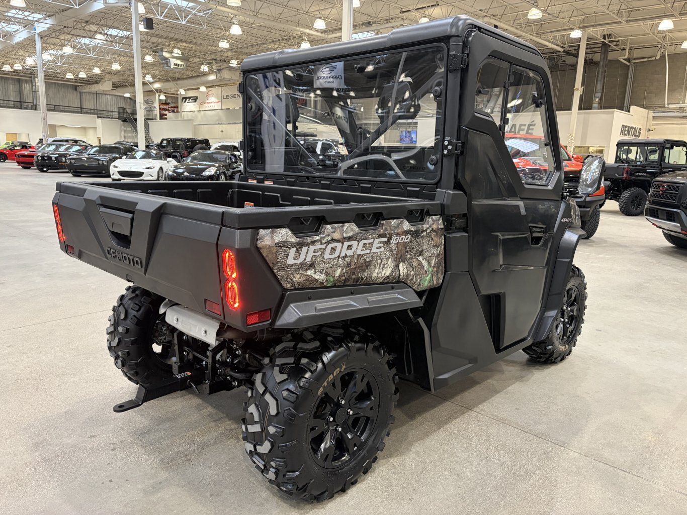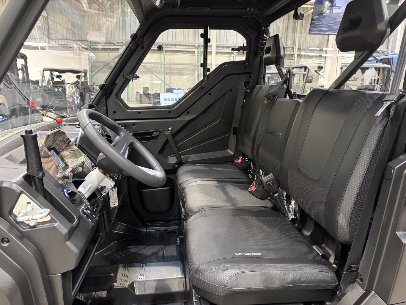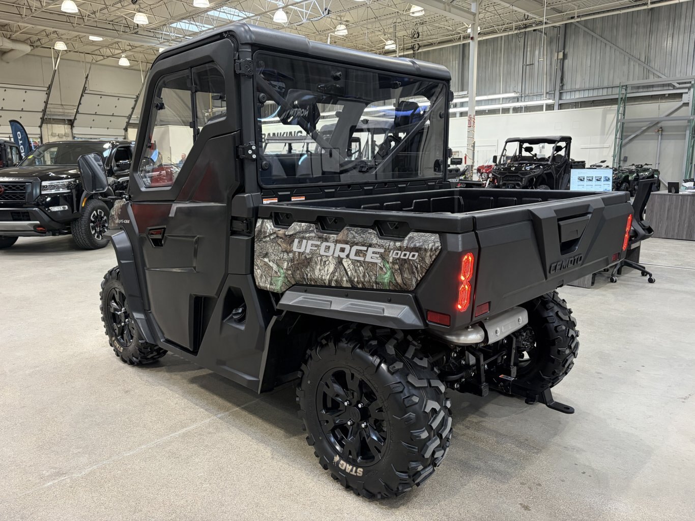 2023 CFMoto UForce 1000 LX EPS5-year limited warranty The UFORCE 1000 impresses with its power and large loading capacity. Equipped to carry out heavy work, it is equipped with the purchase of a 3500 lbs winch, a roof and half doors. Features may include: Electric Power Steering Lateral Mirrors 12V Plug CVTech Clutch System 5-year warranty Fuel injected 963cc engine Continuously Variable Transmission of CVTech- IBC Electric Power Steering (EPS) 3 passengers Rooftop included Tilting rear box 3,500 lb winch with remote control 14\'\' aluminum alloy wheels Digital display dashboard with full instrumentation 12V outlet Mirrors LED headlight with integrated turn signals