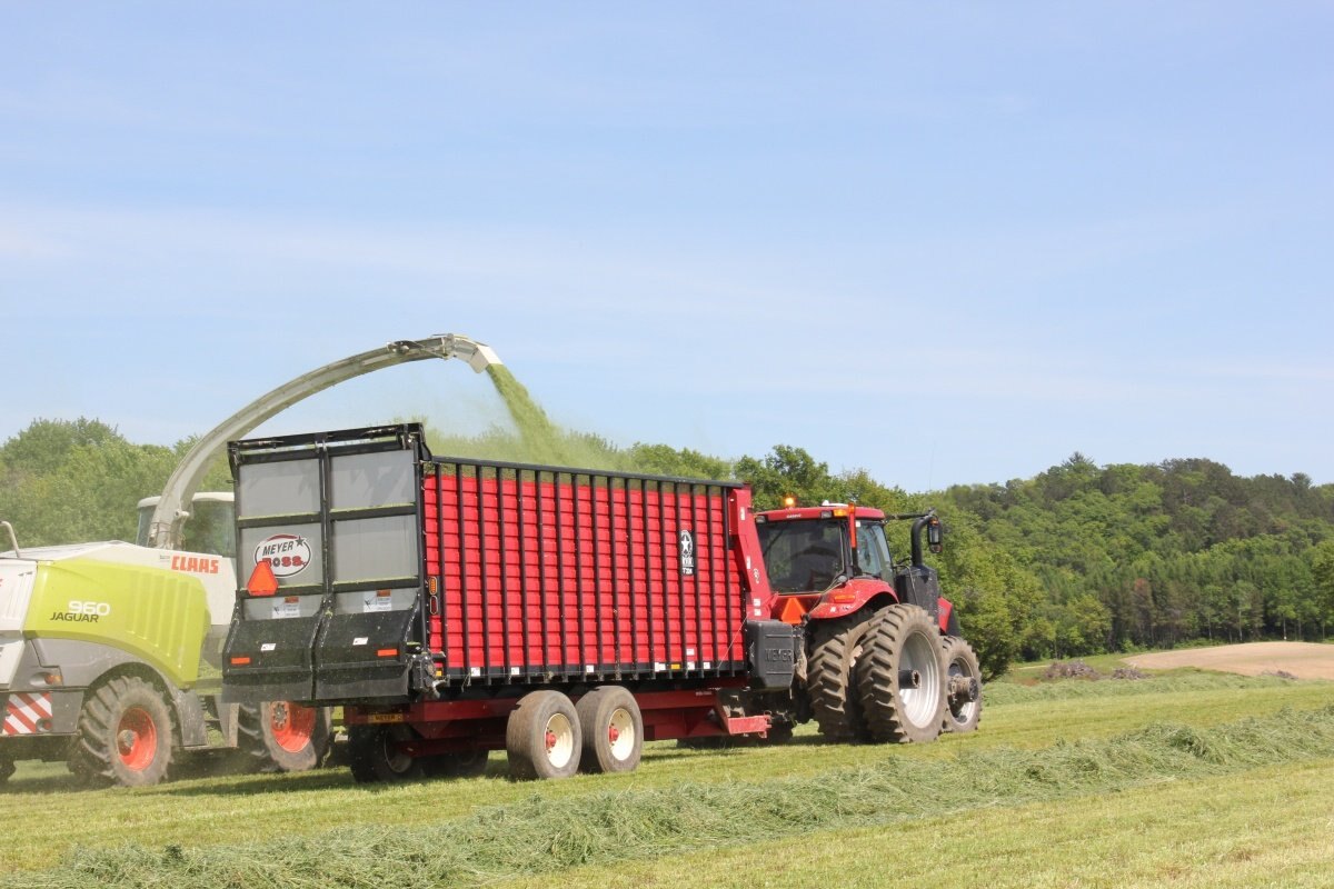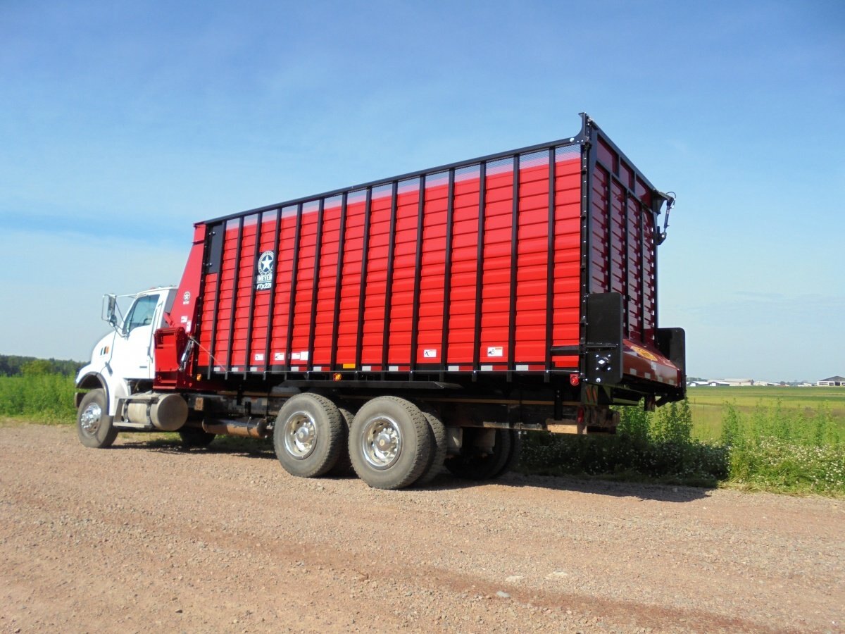 The Meyer RTX200 Series Front & Rear Unload Forage Box features a 7'5" inside width, HD all steel frame, high speed - variable drive, HD bevel geardrive, poly floor, high sides, 4 beaters, rear gate delay and more! Wagon, Cart or Truck Mount models are available. It offers more capacity, more speed and more options than any other forage box on the market! RTX200's are standard as an open top but also offer a roof option. Hydraulic drive packages are also avaiable.