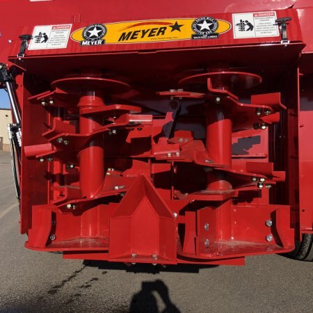 The New Meyer Crossfire Series V-Spreader combines the technology and performance of our Industrial Series models into a smaller configuration to give you maximum performance in the 260 - 540 bushel range. Our unique Rear Discharge System is unlike all others, incorporating a pantented rear discharge system with two shaft-driven vertical expellers for premium spread performance. The expellers are fed by an aggressive 3-auger system which powers through pack manure, semi solids, sand sludge, slurry, litter, biosolids, and certain lime and compost products. Rear Discharge keeps your tractor and spreader clean while maximizing the value of the product you are applying - it just makes sense! THE NEW CROSSFIRE MODELS REPLACE THE FORMER V-MAX & V-FORCE MODELS - get ready to be impressed with a superior spread pattern. |