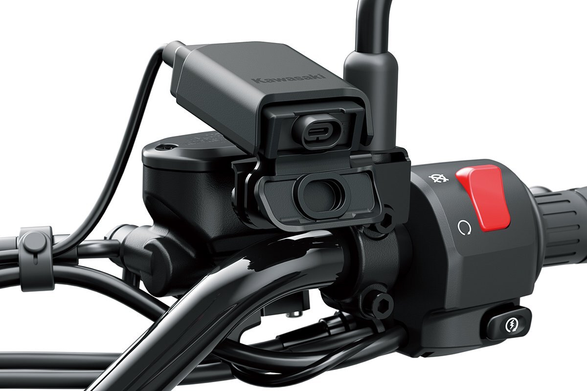 - Handlebar-mounted USB-C outlet