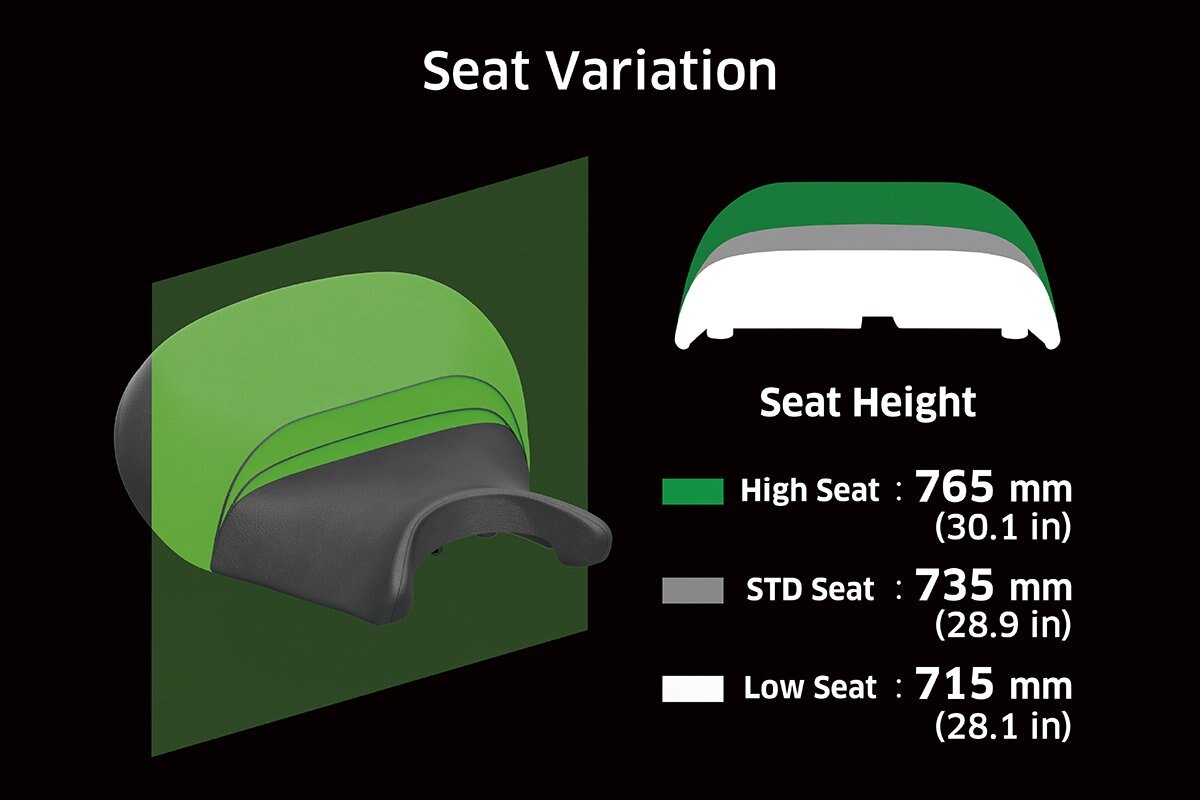 - Low 735 mm (29.8 in) seat height