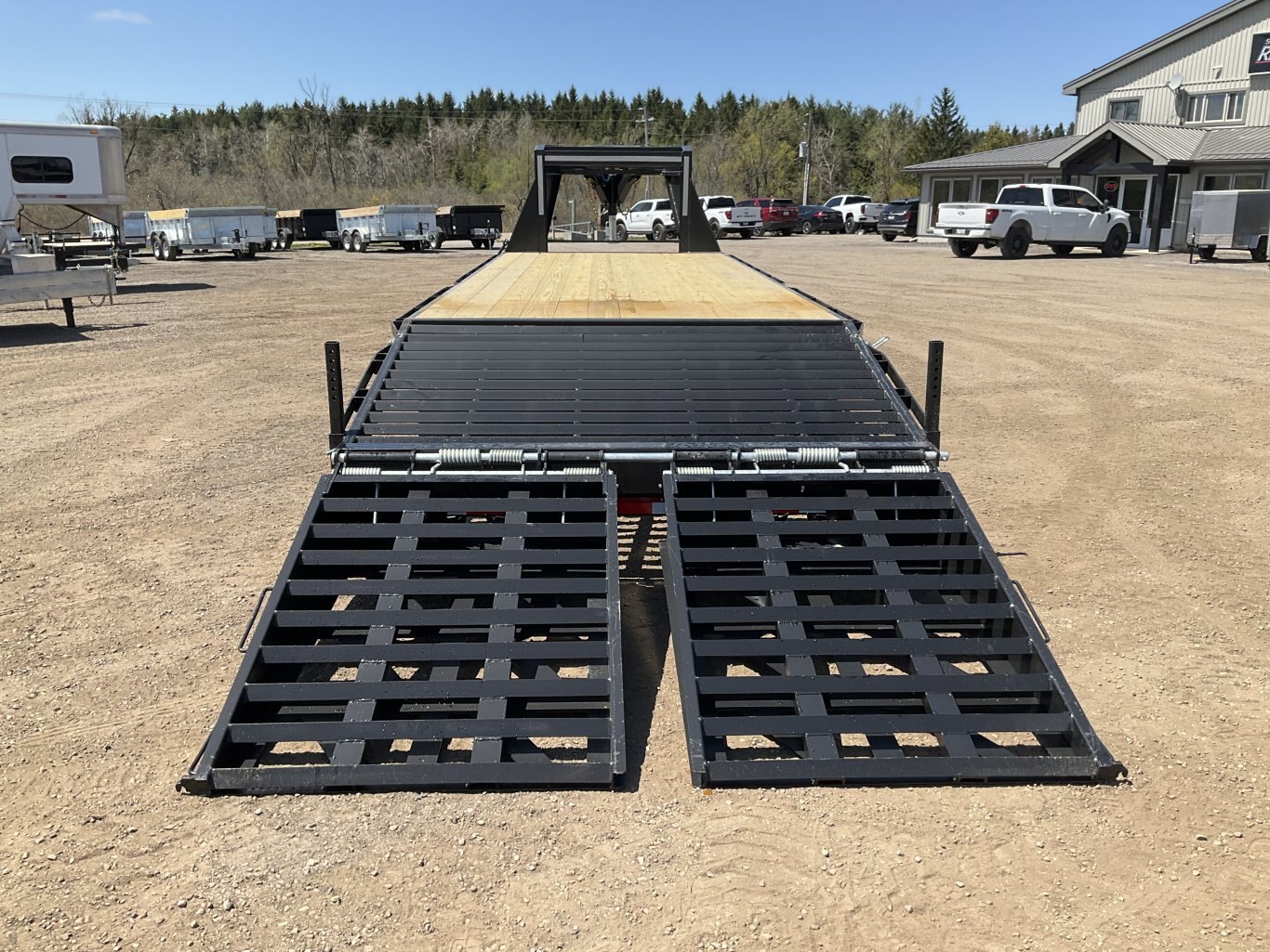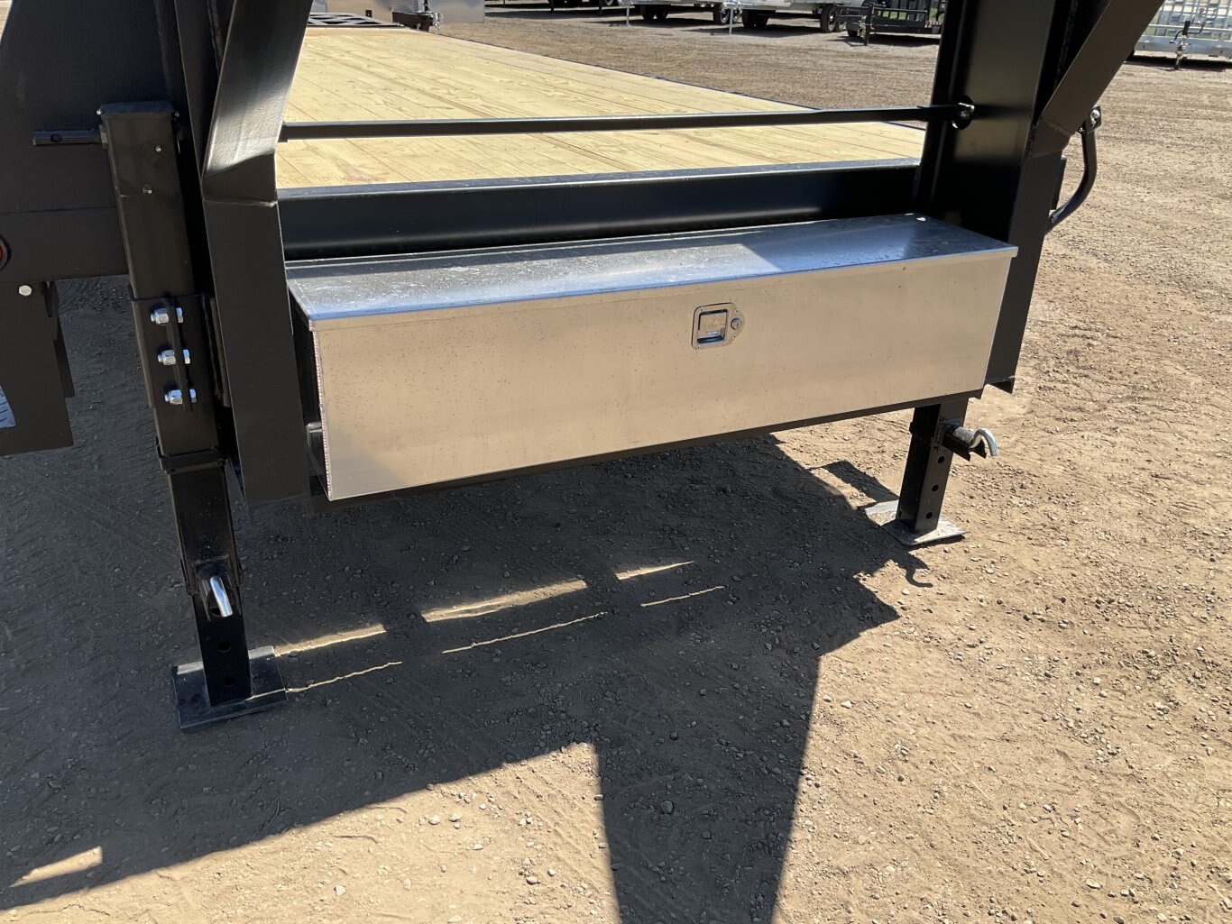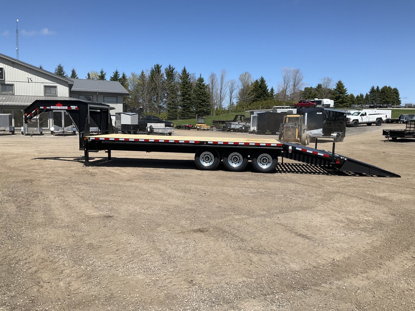 22,680LB GVWR, 3 7000LB Axles, Electric Brakes on Both Axles, 16 Inch Radial Tires, Adjustable Gooseneck Coupler, 2 12,000LB Drop Leg Jacks, 5' Beavertail, 5' Spring Assisted Wedge Ramps, 16 Inch Cross Members, Flex Resisting Bridge, 36 Inch Deck Height, Pressure Treated Wood Floor, 9' Gooseneck, Stake Pockets and Rub Rails, Side Steps on Each Side, Drivers Side Winch Track, Lockable Aluminum Toolbox, Spare Tire Mount, Spare Tire and Rim, Sealed LED Lighting, Sealed Harness, Powder Coat Painted with Scorpion Stone Guard