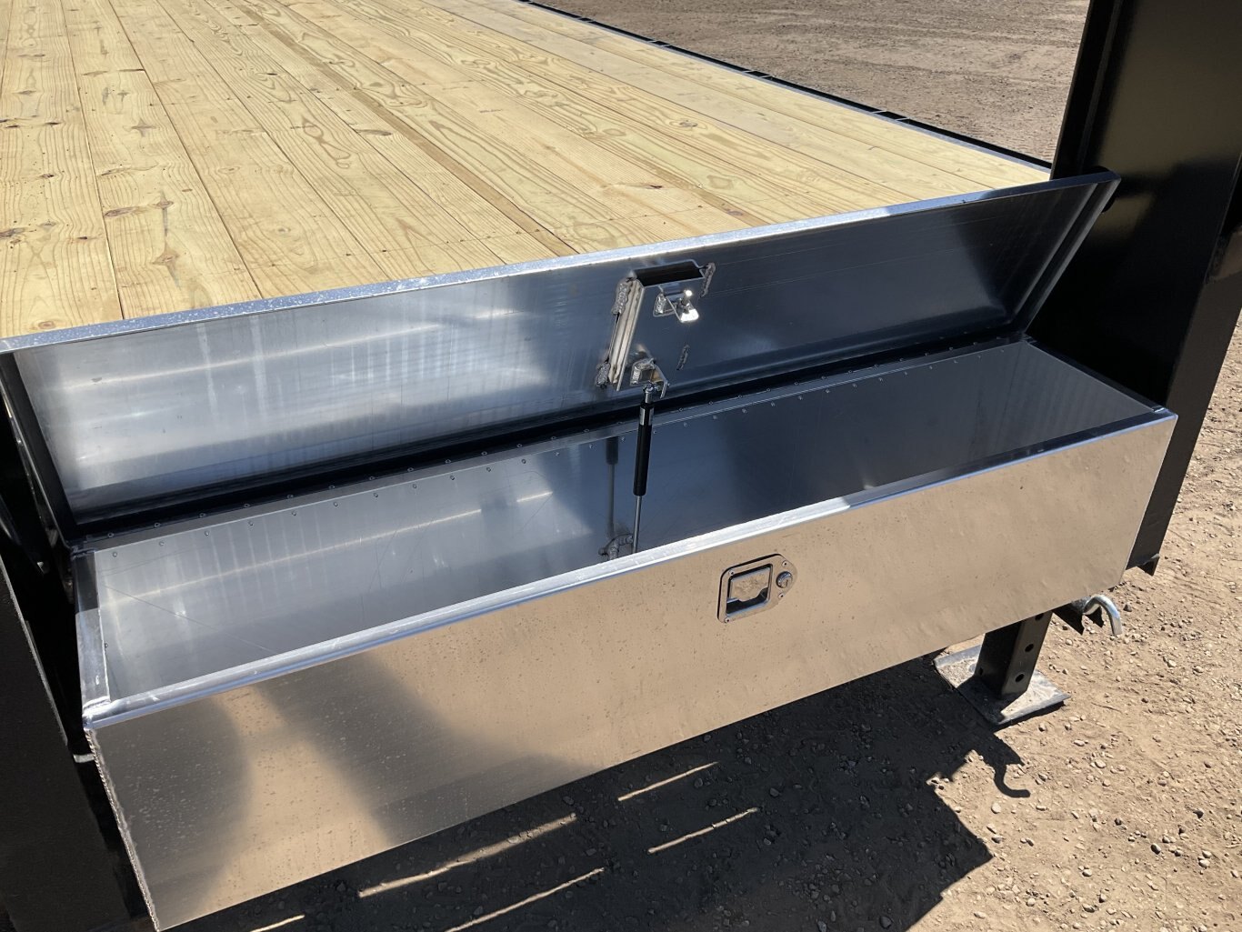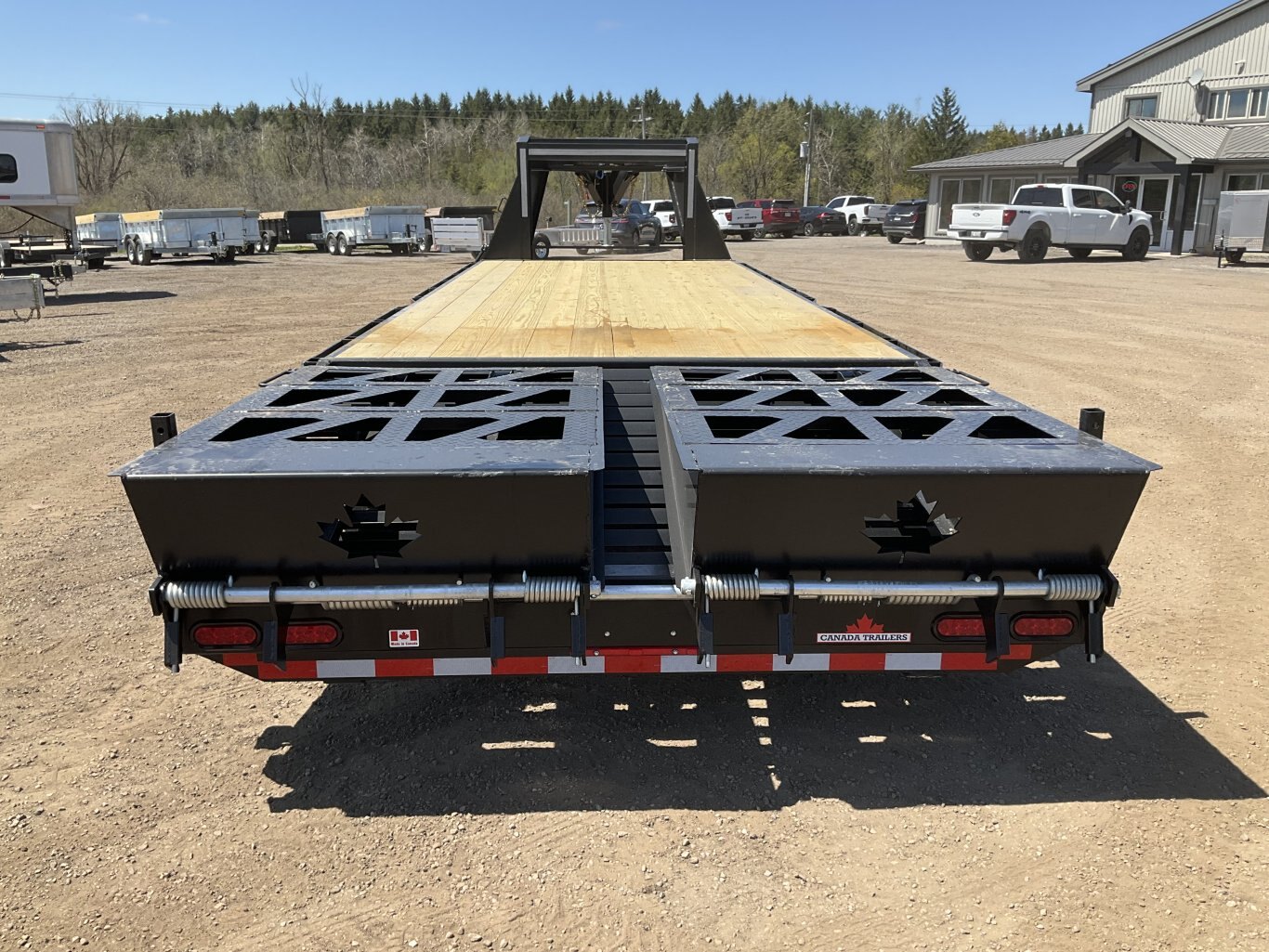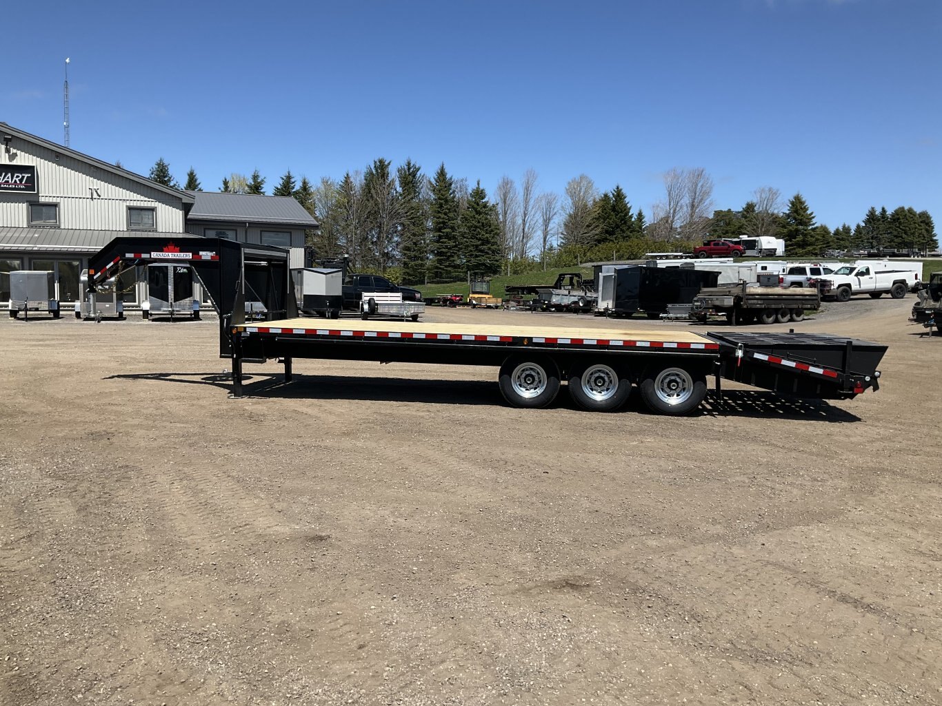 22,680LB GVWR, 3 7000LB Axles, Electric Brakes on Both Axles, 16 Inch Radial Tires, Adjustable Gooseneck Coupler, 2 12,000LB Drop Leg Jacks, 5' Beavertail, 5' Spring Assisted Wedge Ramps, 16 Inch Cross Members, Flex Resisting Bridge, 36 Inch Deck Height, Pressure Treated Wood Floor, 9' Gooseneck, Stake Pockets and Rub Rails, Side Steps on Each Side, Drivers Side Winch Track, Lockable Aluminum Toolbox, Spare Tire Mount, Spare Tire and Rim, Sealed LED Lighting, Sealed Harness, Powder Coat Painted with Scorpion Stone Guard