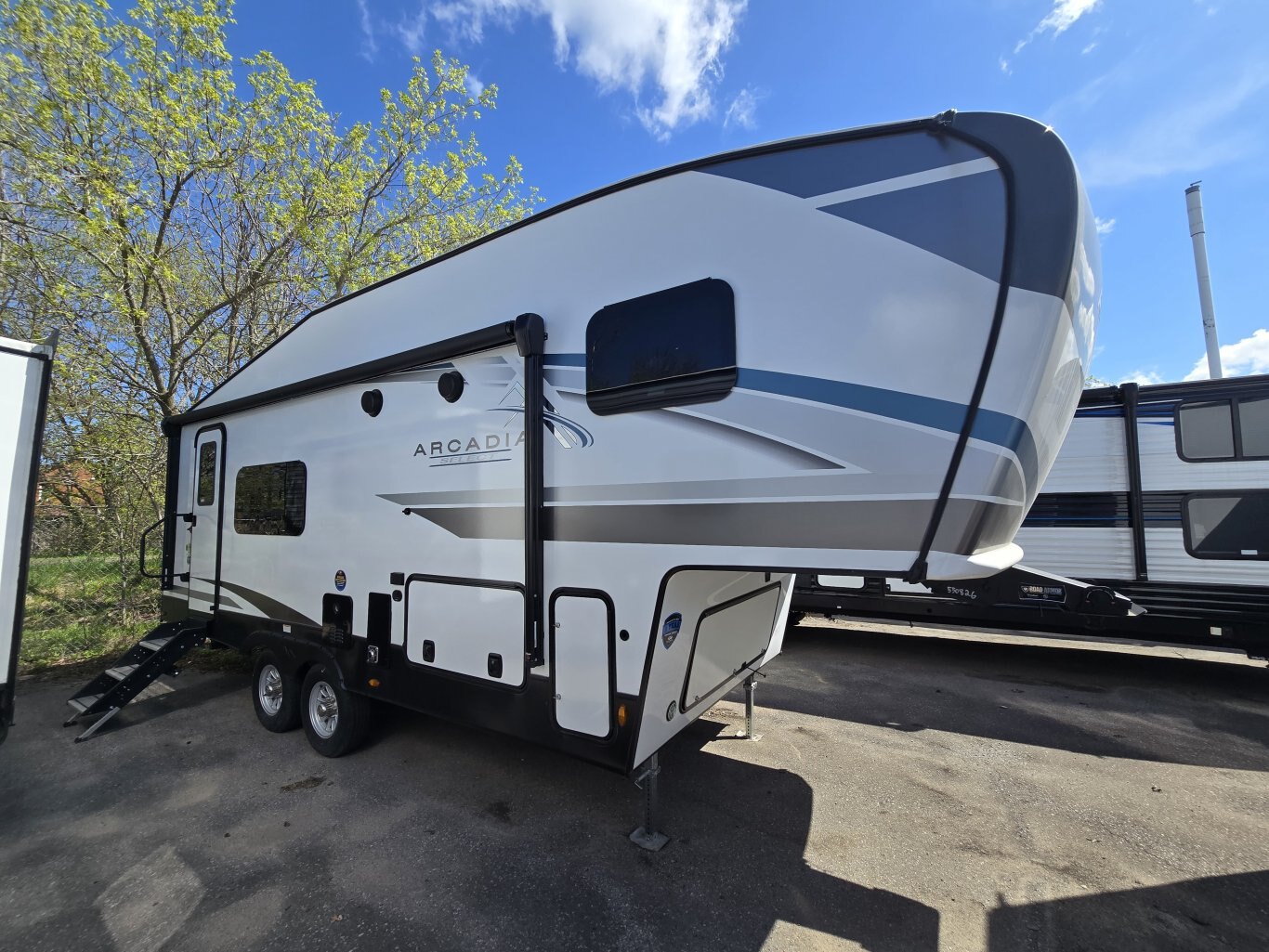 Explore the 2024 Keystone Arcadia Select 21SRK today at Del Mastro Recreation in Peterborough, Ontario. Our team is ready to help you find the perfect fifth wheel for your next adventure.