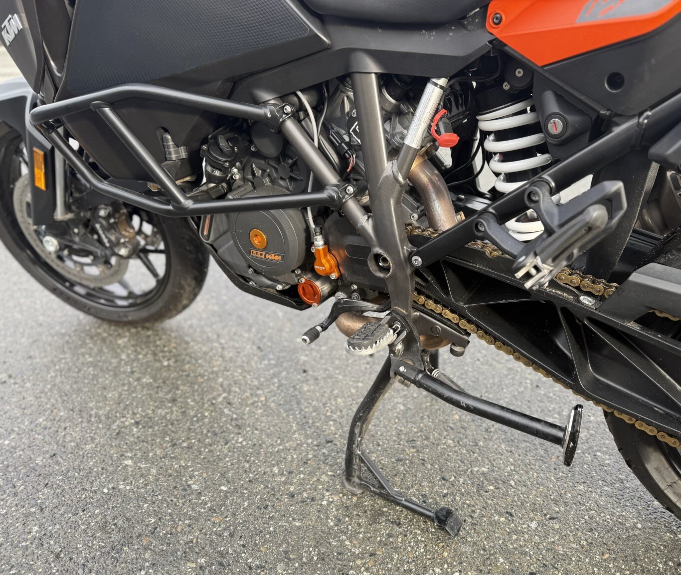 Whether it's cracking the throttle wide open out of an exhilarating asphalt corner, or braking hard while tipping it into a gravel turn, pushing the laws of physics is what the KTM 1290 SUPER ADVENTURE S is made for. Its combination of incredible horsepower and torque and a mere 215 kg (474 lbs) dry weight is kept in check by the most advanced electronics in the world of motorcycling. All you have to do is focus on the road ahead and hold on tight, while enjoying every twist and turn as you push further and further.