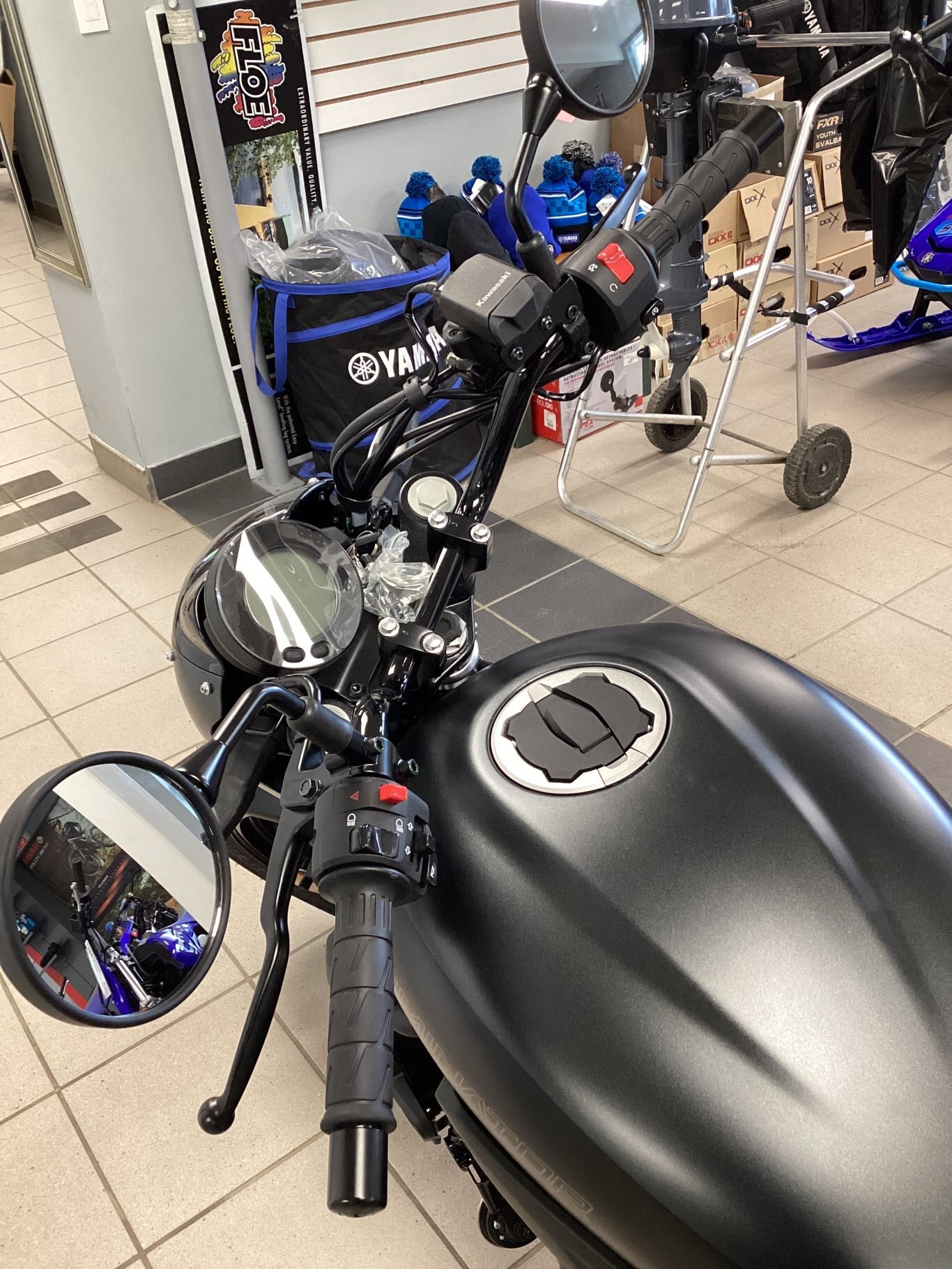 - Handlebar-mounted USB-C outlet