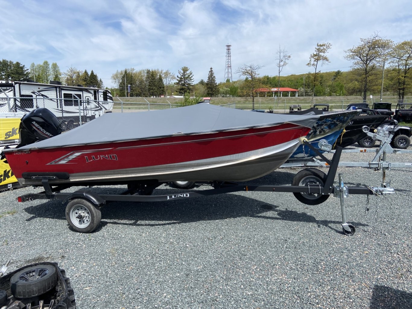Boat has very little usage, comes with a 25Hp Mercury 4 stroke with electric start and power trim, full vinyl floor, Helix 5, oars, fuel tank hider and custom travel cover.