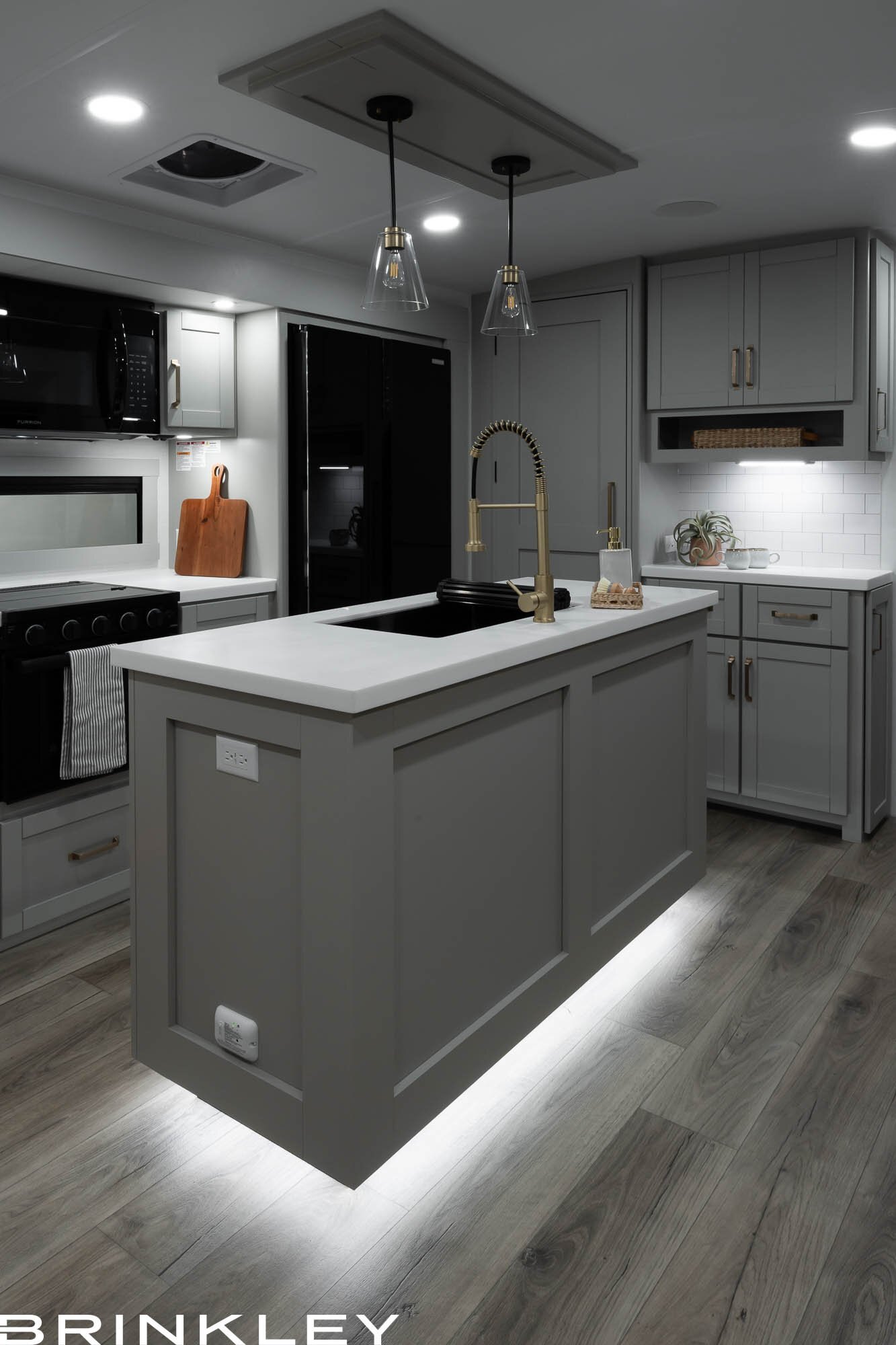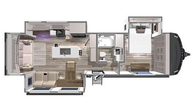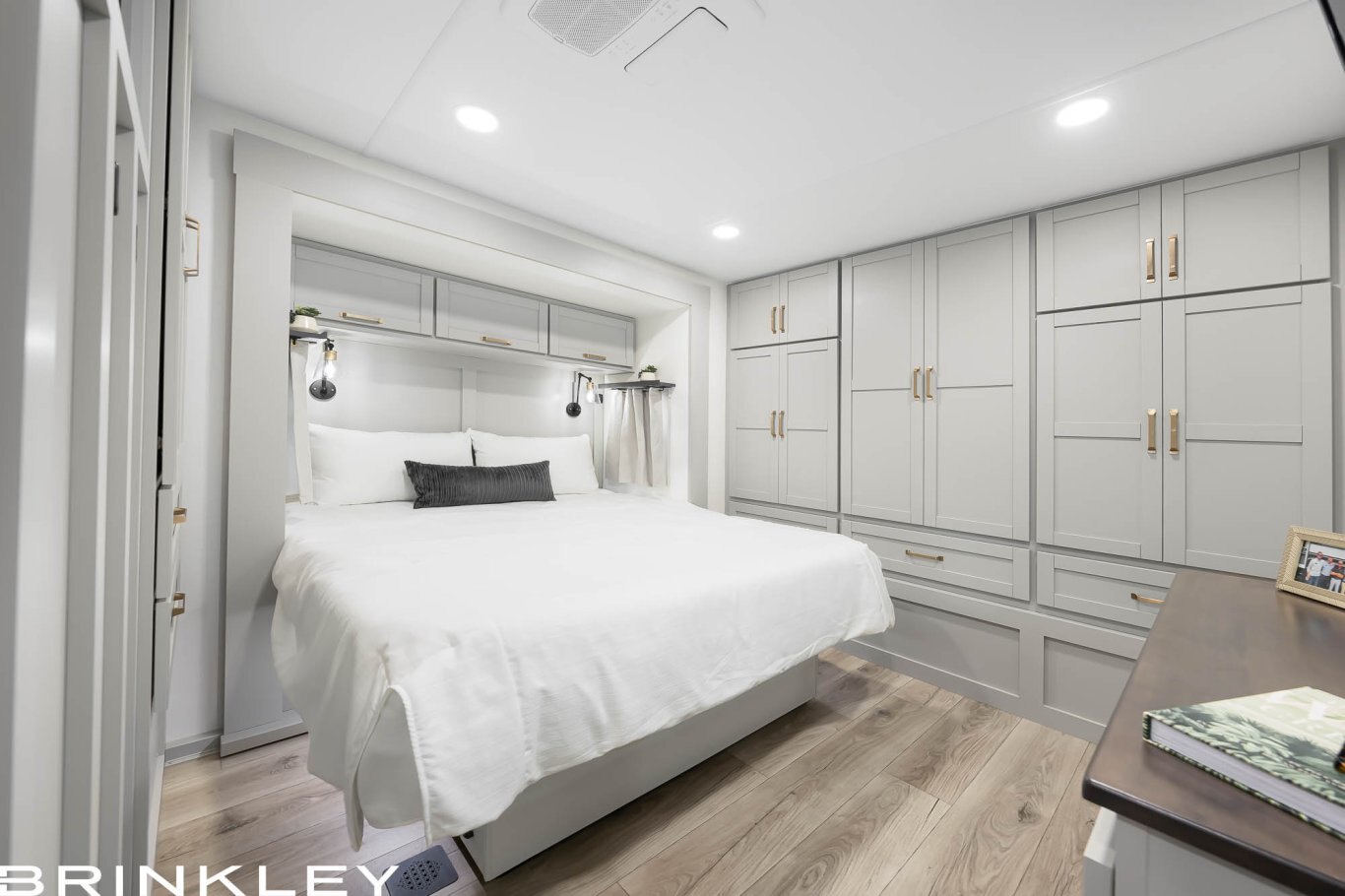 Discover your perfect escape or full-time home in the Brinkley Model Z AIR 310. This expansive layout is meticulously crafted as the ultimate luxury experience for couples. Indulge culinary passions in the stunning residential gourmet kitchen, then relax or entertain in the inviting conversational living room. The private, spacious bedroom serves as a tranquil sanctuary, featuring a standard queen bed flanked by nightstands (a king bed option is available). With abundant, thoughtfully integrated storage throughout, this coach easily accommodates extended trips or full-time living. As part of the Model Z AIR line represents the pinnacle of luxury travel trailers, delivering uncompromising comfort, quality, and residential style for the most discerning RVer.