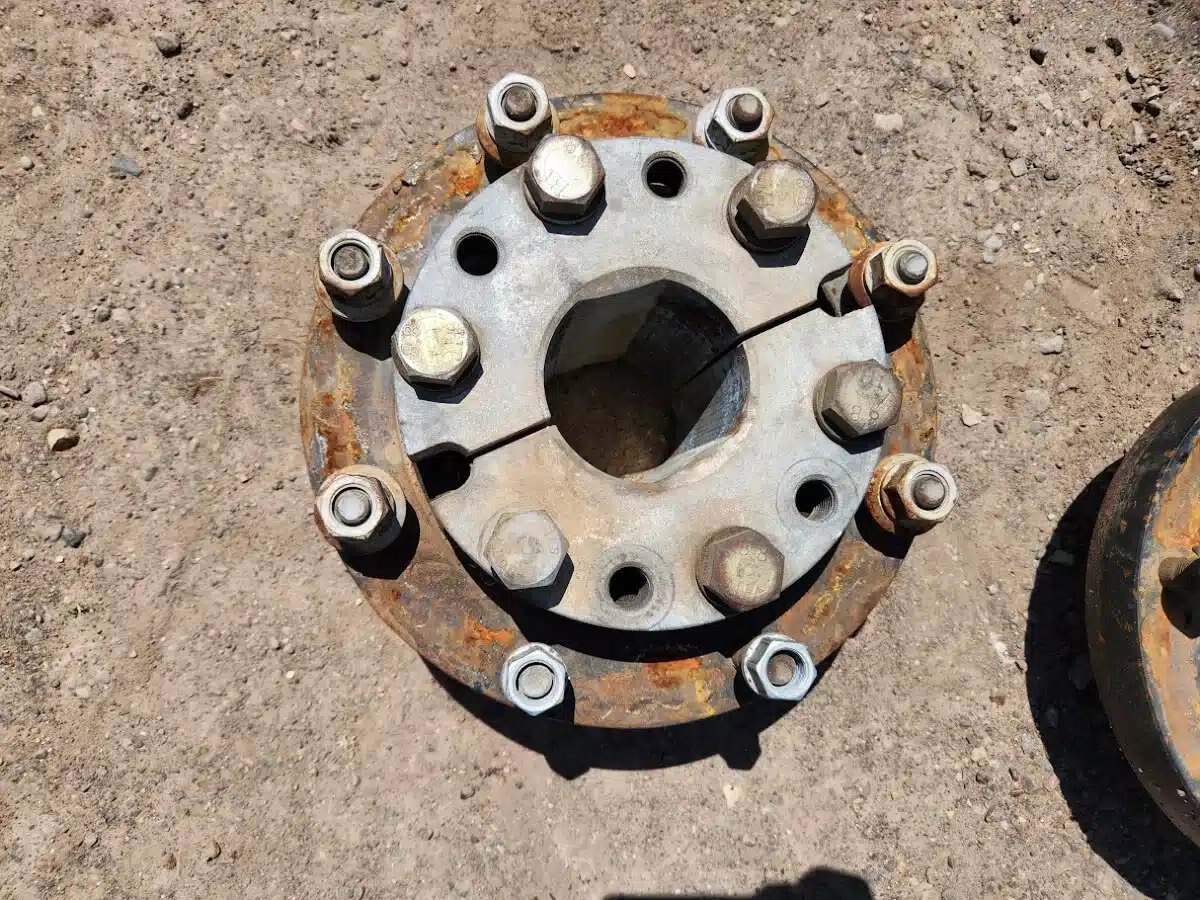 Large 8 bolt, includes wedges, fits New Holland or Case with 3 5/8" axle Stock # BR03235