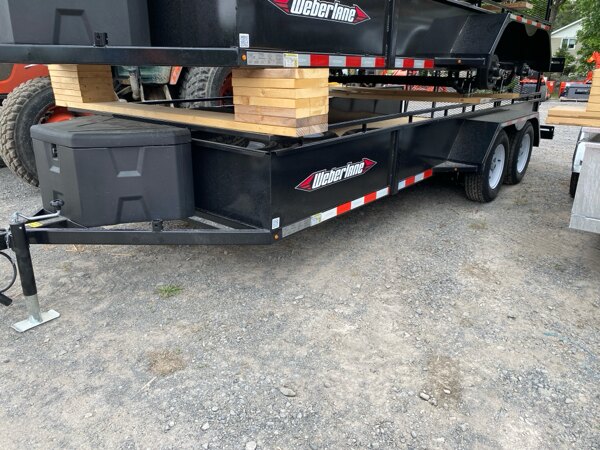 Externalspecs: Tandem axle landscape trailer, 6\' wide x 16\' long with\ntwo 3500 lbs 4\" drop axles, electric brakes on one axle,\nfull mesh ramp, sealed beam lights, 2\" coupler, 6000lbs\nupper tie bar, 14\" sides, pvc tool box