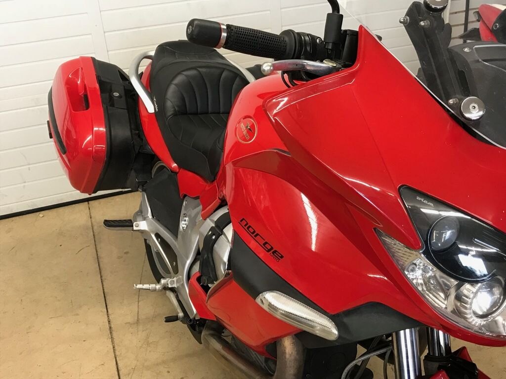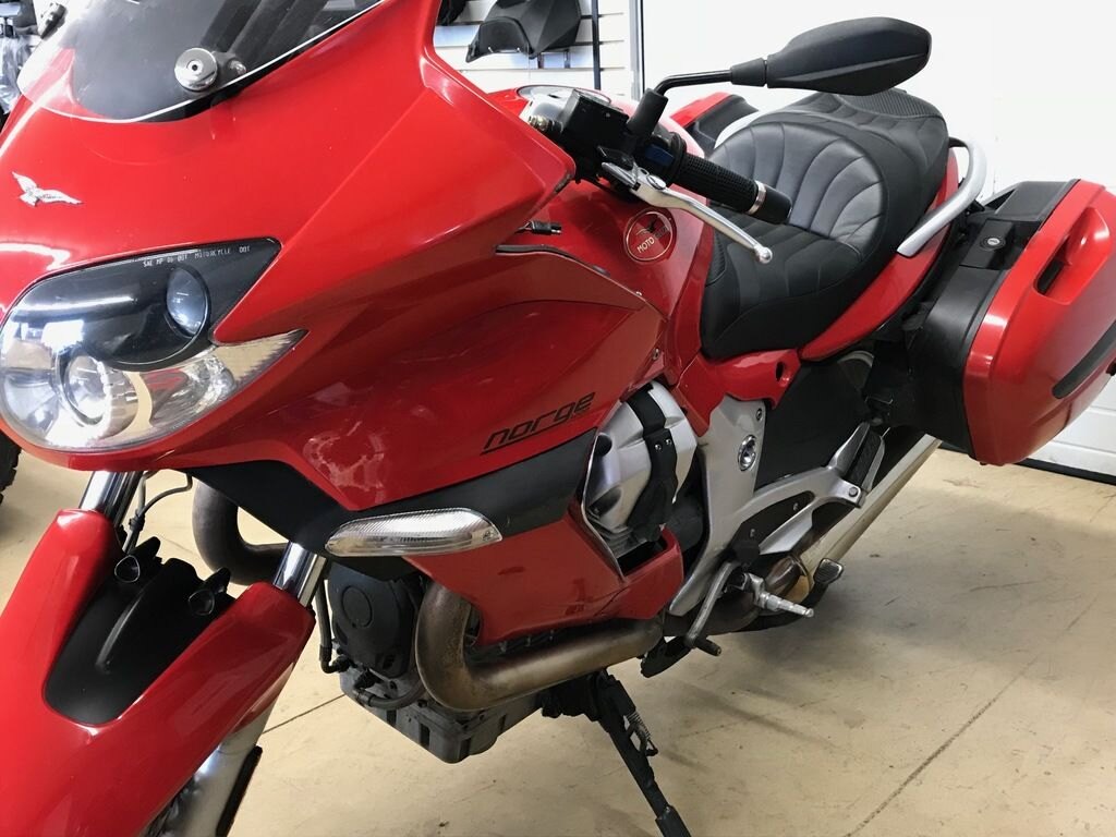 Norge 1200 cc comes with hard luggage, tall windscreen, corbin seat, heated grips and center stand. Certified.