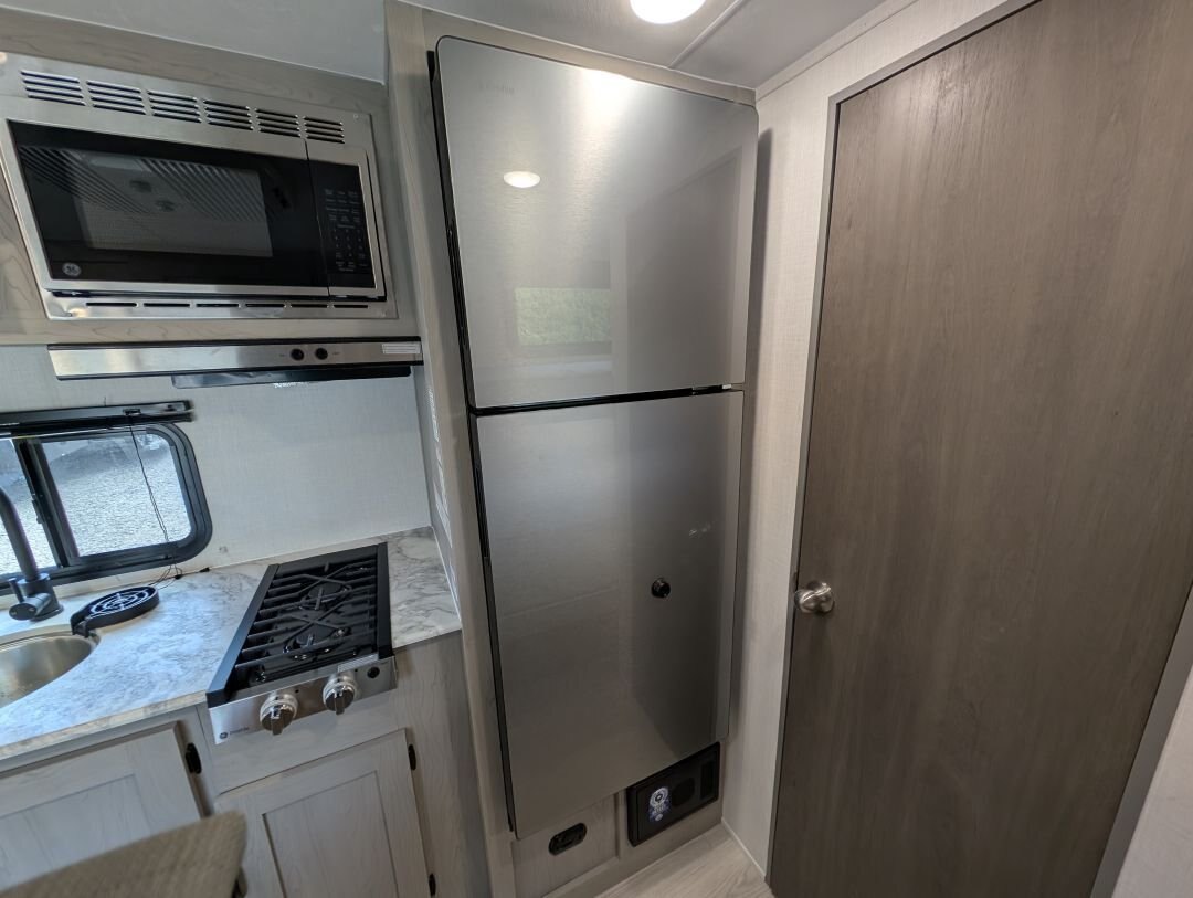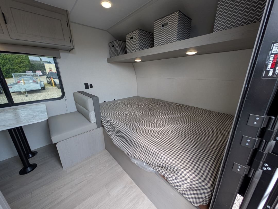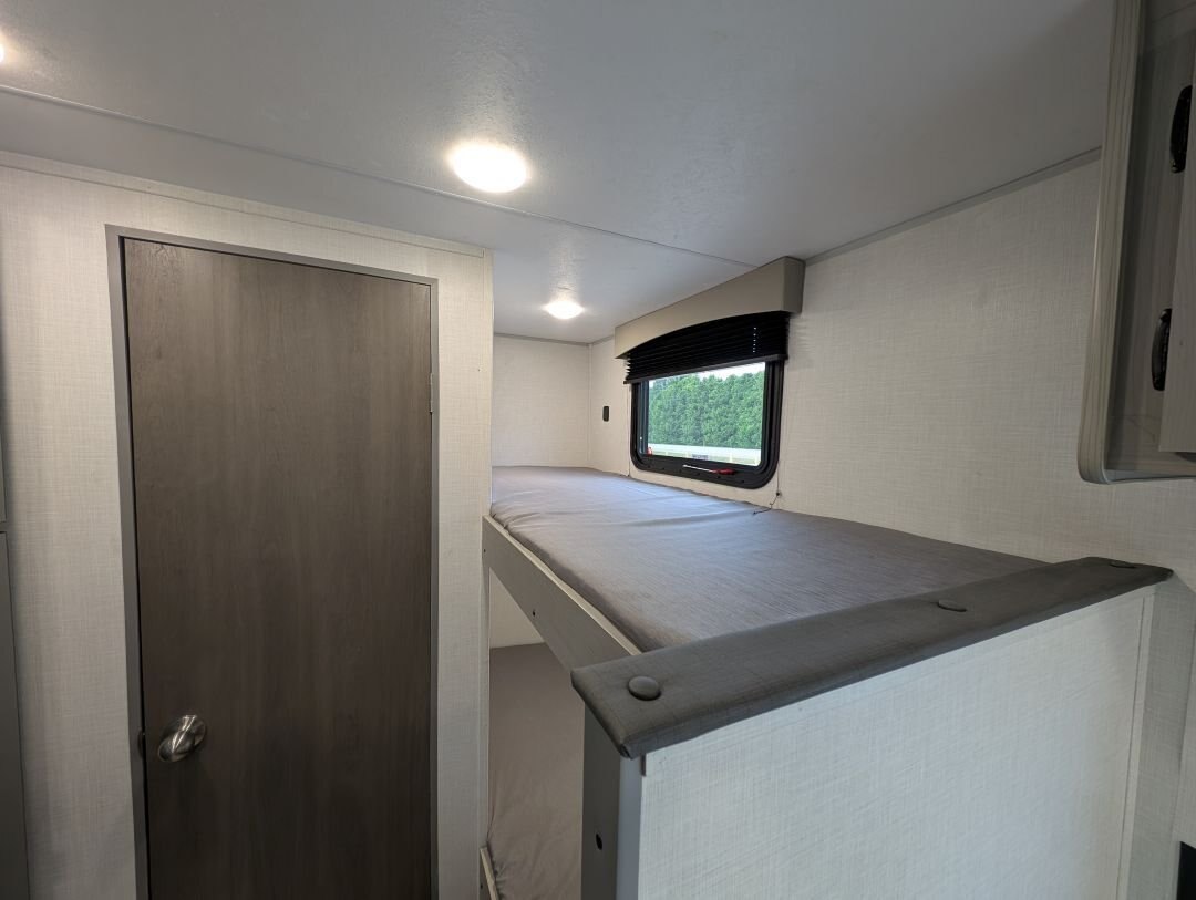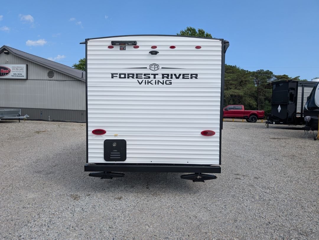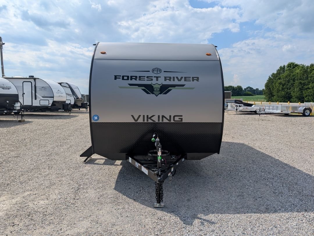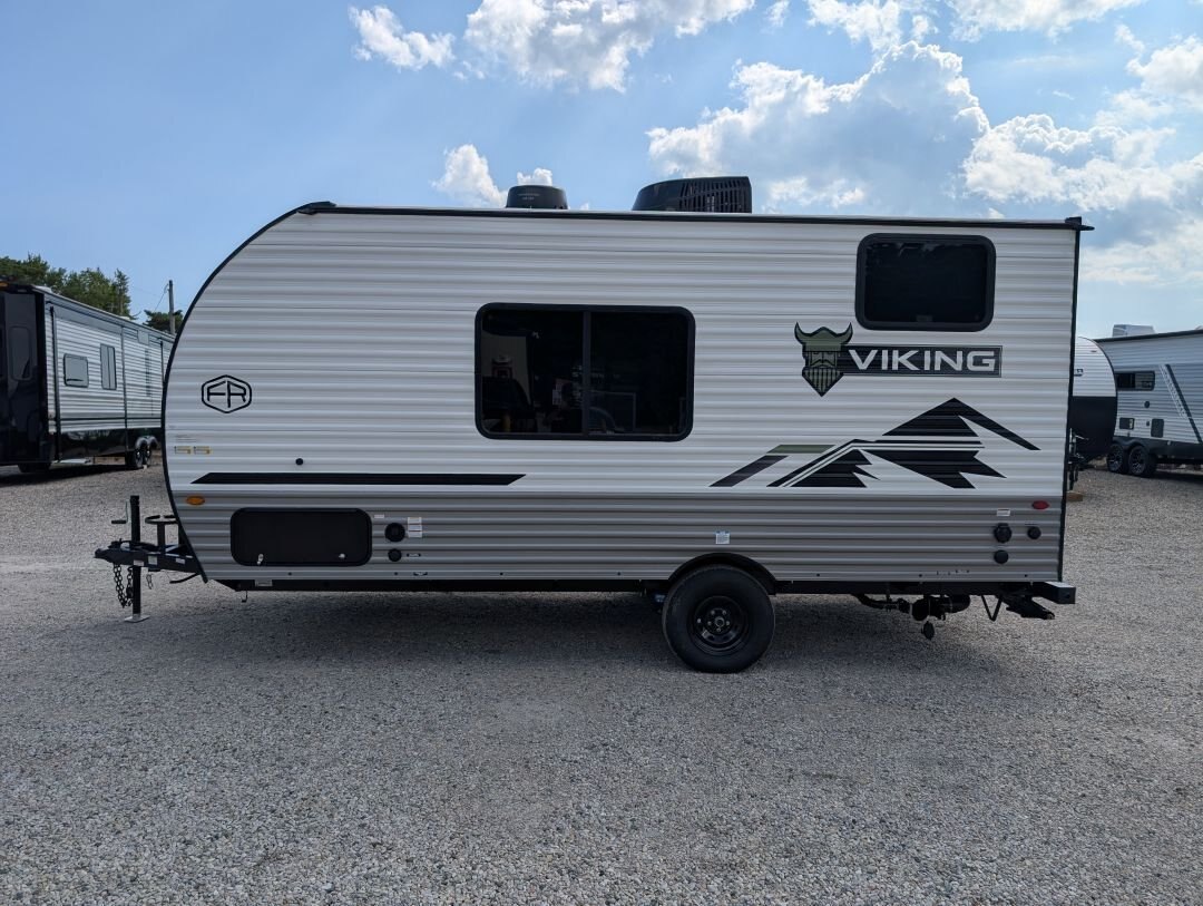 Looking for a compact, lightweight travel trailer packed with features? The 2026 Viking 17SBH has gotten TONS of upgrades this year and is perfect for weekend getaways or extended trips. This Viking travel trailer combines function, quality, and value in one towable package. A top choice for couples or small families ready to explore the great outdoors. Designed for easy towing and maximum comfort, this bunkhouse model offers premium features at an unbeatable value. NEW IN 2026: All appliances upgraded to General Electric. 10 cu. Ft. fridge upgrade, energy-efficient tankless on-demand water heater, thermofoil countertops, AND MORE This unit includes the following options: Camping Made Easy Package: Enjoy hassle-free setup and comfort with solid entry steps, power awning with LED lighting, foot-flush toilet, black tank flush, battery disconnect, smooth metal front, solar prep, magnetic baggage door latches, USB charging ports, backup camera prep, friction-hinge entry door, omni-directional TV antenna, 12V bathroom vent fan, LCI ladder prep, and more. Quality & Appliance Package: Includes a large 10 cu. ft. GE 12V refrigerator, stainless steel GE 2-burner cooktop, microwave, 13.5K BTU roof-mounted AC, 20K BTU propane furnace, and an energy-efficient tankless on-demand water heater. Durable Construction: Built on a BAL NXG frame with powder coating and Huck bolt assembly, 5/8” tongue and groove plywood flooring, seamless one-piece TPO roof membrane, thermofoil countertops, and drop-edge finishes for long-lasting durability. Tow-Ready Essentials: Comes with a spare tire and carrier, electric brakes, easy-lube axles, and Canadian coding for compliance and convenience. Bonus Coverage: Includes RVIA and MVSA seals, plus Travel Easy Roadside Assistance for added peace of mind on the road.