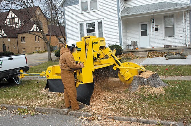 | Cut the big jobs down to size with the powerful 74 hp (55.2 kW) turbo-charged SC802 stump cutter. Between its patented AutoSweep® gear-drive cutter system and an impressive 103 in (262 cm) sweep arch and 60 in (152 cm) tongue extension, the SC802 makes short work of even big, tough hardwood stumps. |